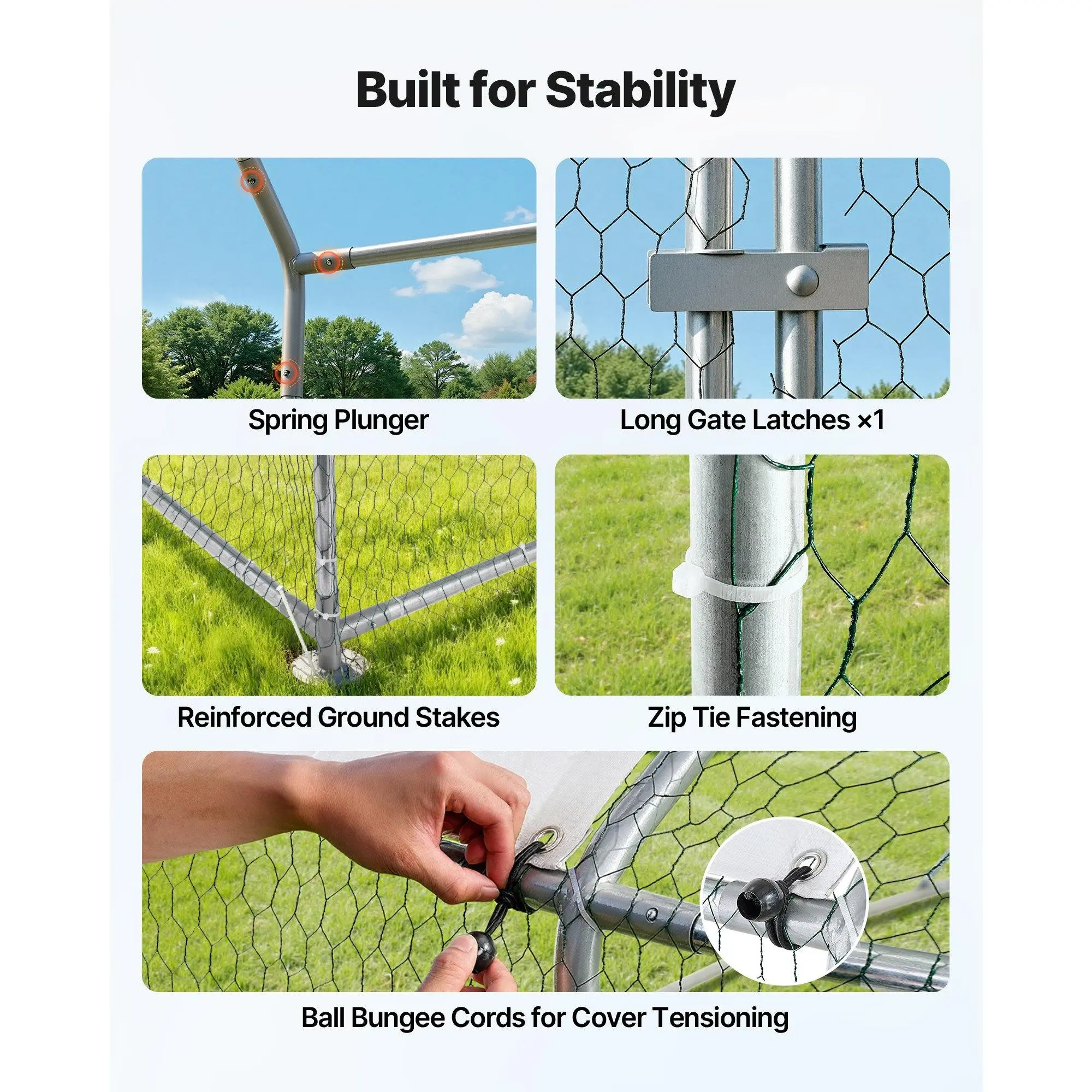 Featuring spacious doors, the metal chicken run allows easy access without bending down. The secure lock design prevents poultry from escaping, making your farming chores hassle-free.