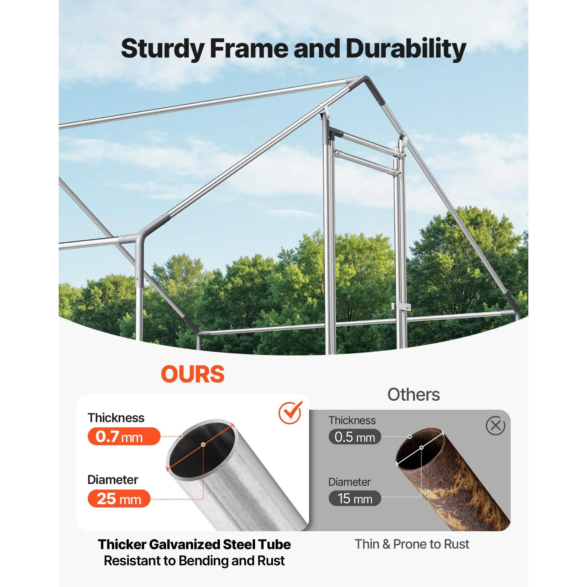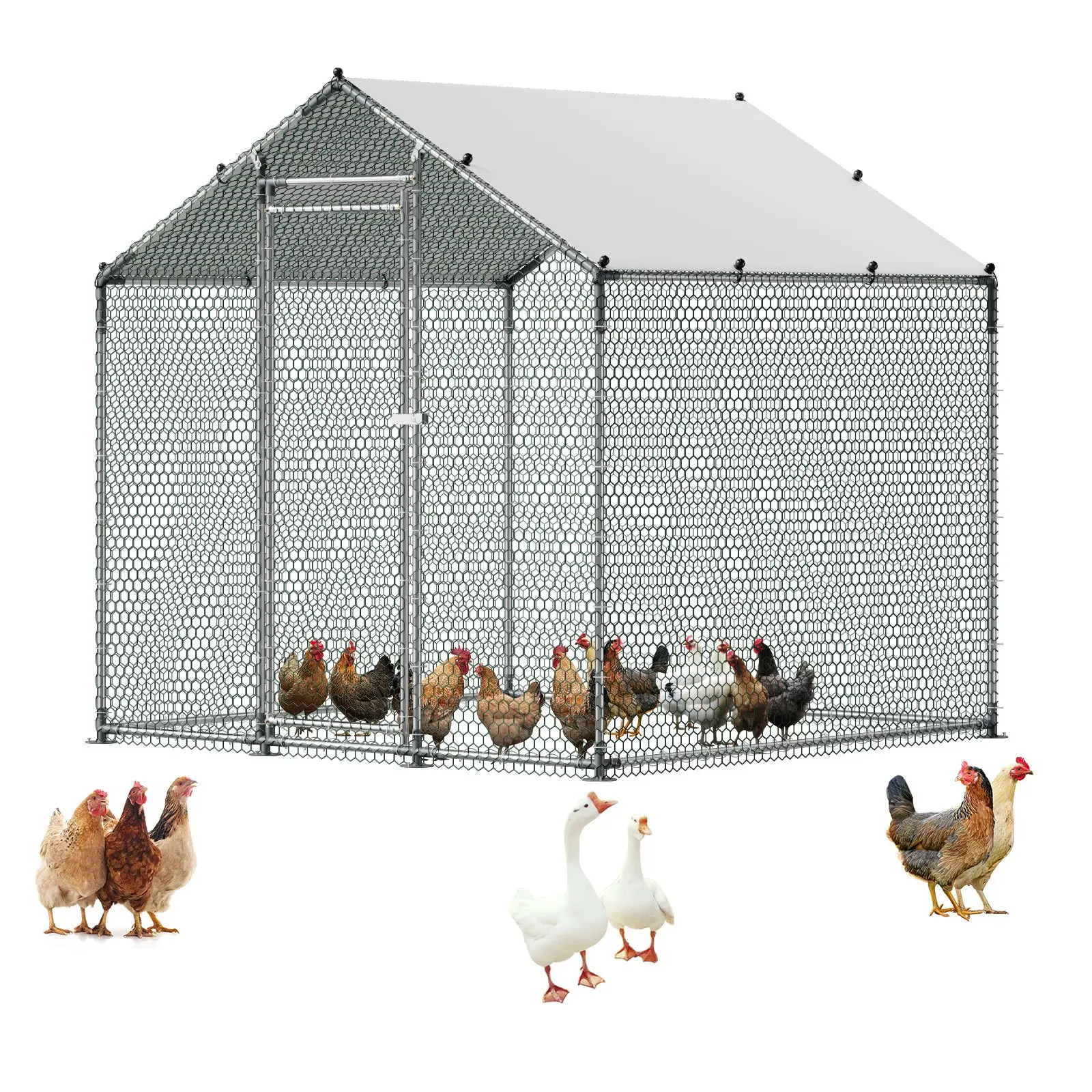 Our metal chicken coop is made of galvanized steel pipes, tested against salt spray to prevent rusting. It provides a safe and cozy high-quality home for your chickens, no matter rain or shine.