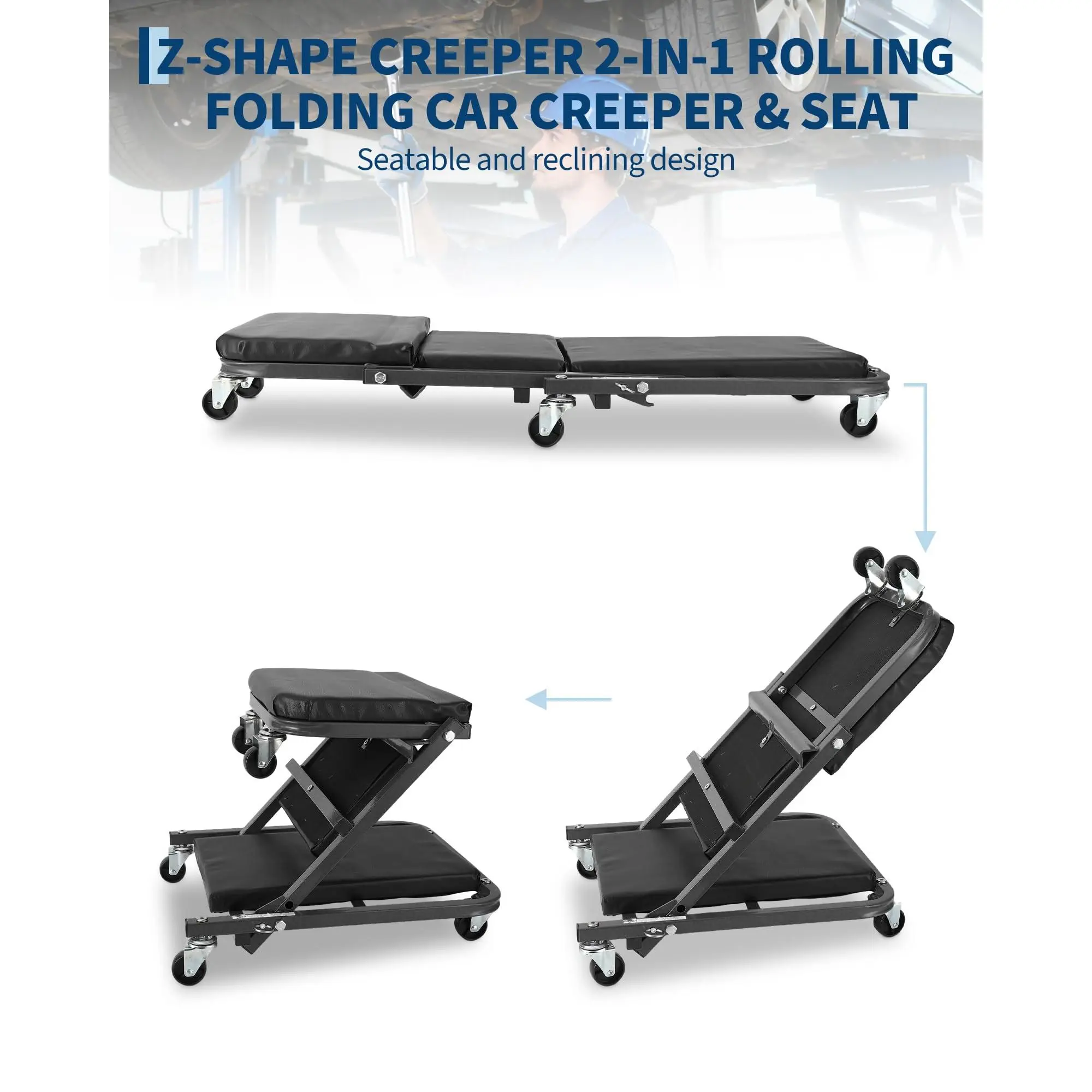 Mechanic Creeper 36 Inches 2 Modes Z Seat 330 lbs Capacity, Foldable Garage Chair Adjustable Rolling Folding with 6 pcs Wheels Roller, Lay Down or Sit, Under Car