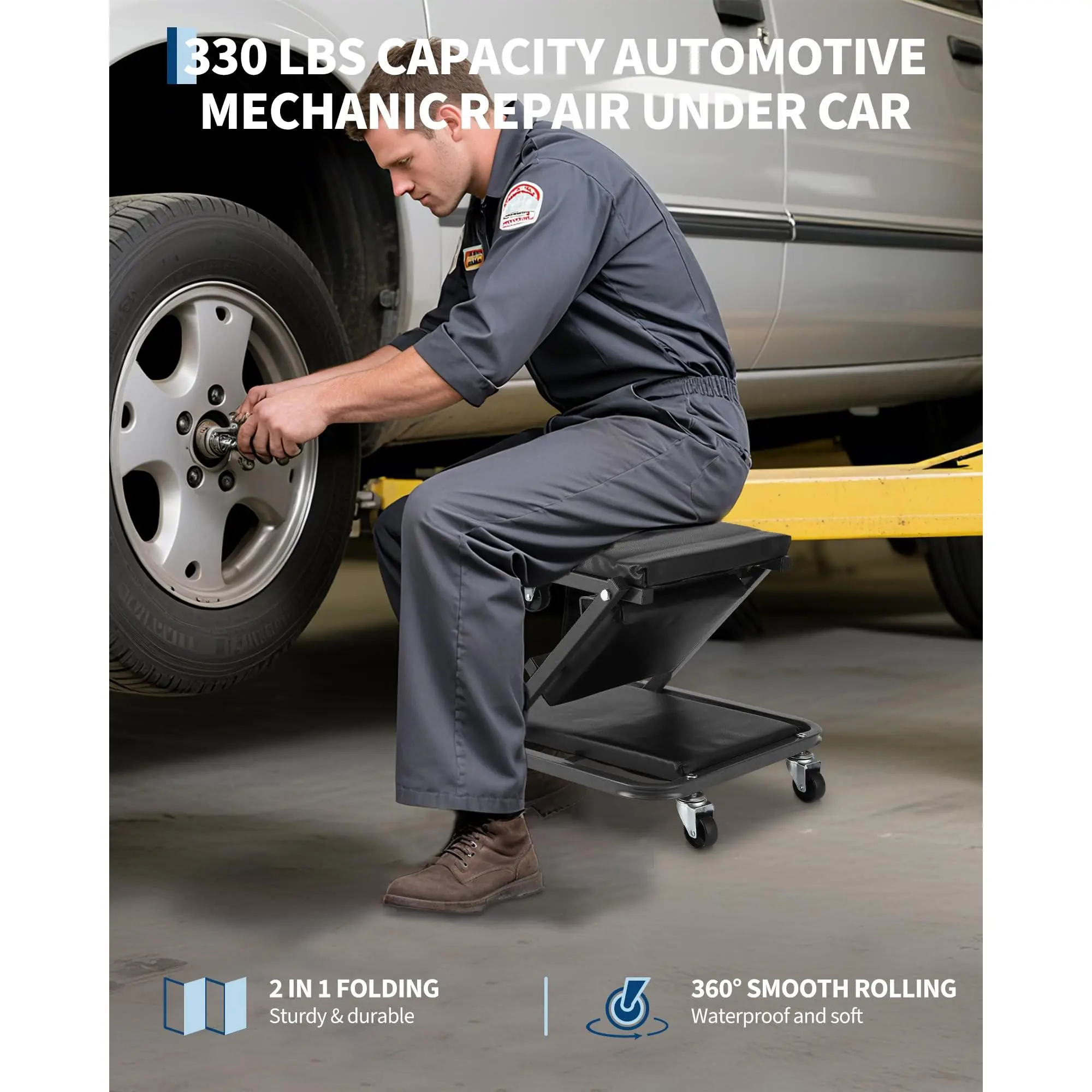 High Weight Capacity: Supports up to 330 lbs, combining durability and comfort for reliable use during demanding automotive tasks.