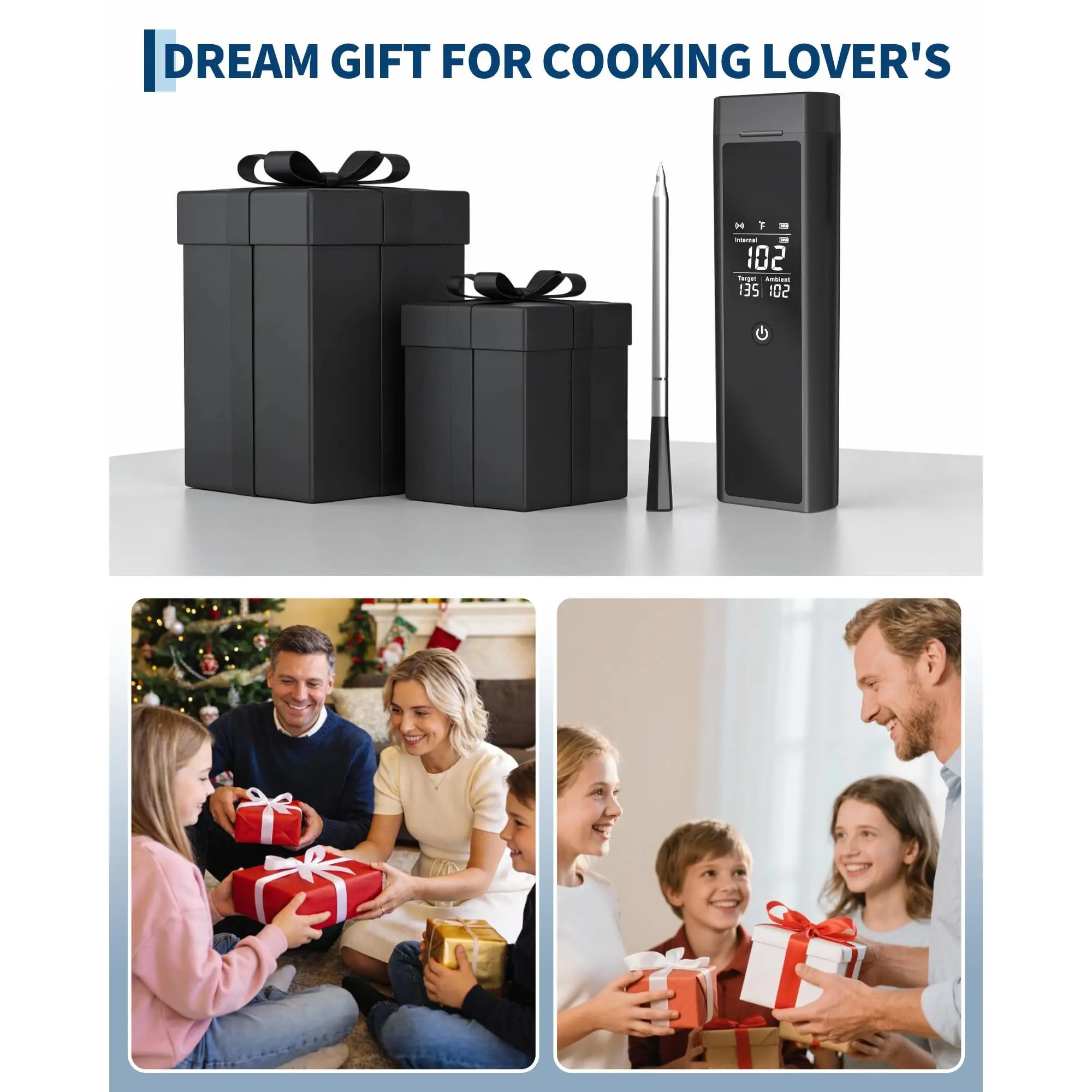 Wireless Monitoring & Smart Alerts: Featuring advanced Bluetooth 5.3 technology, this thermometer enables real-time remote monitoring via your smartphone. Customizable dual alarms prevent overcooking or undercooking, making it perfect for grilling beef, pork, turkey, lamb, and more.