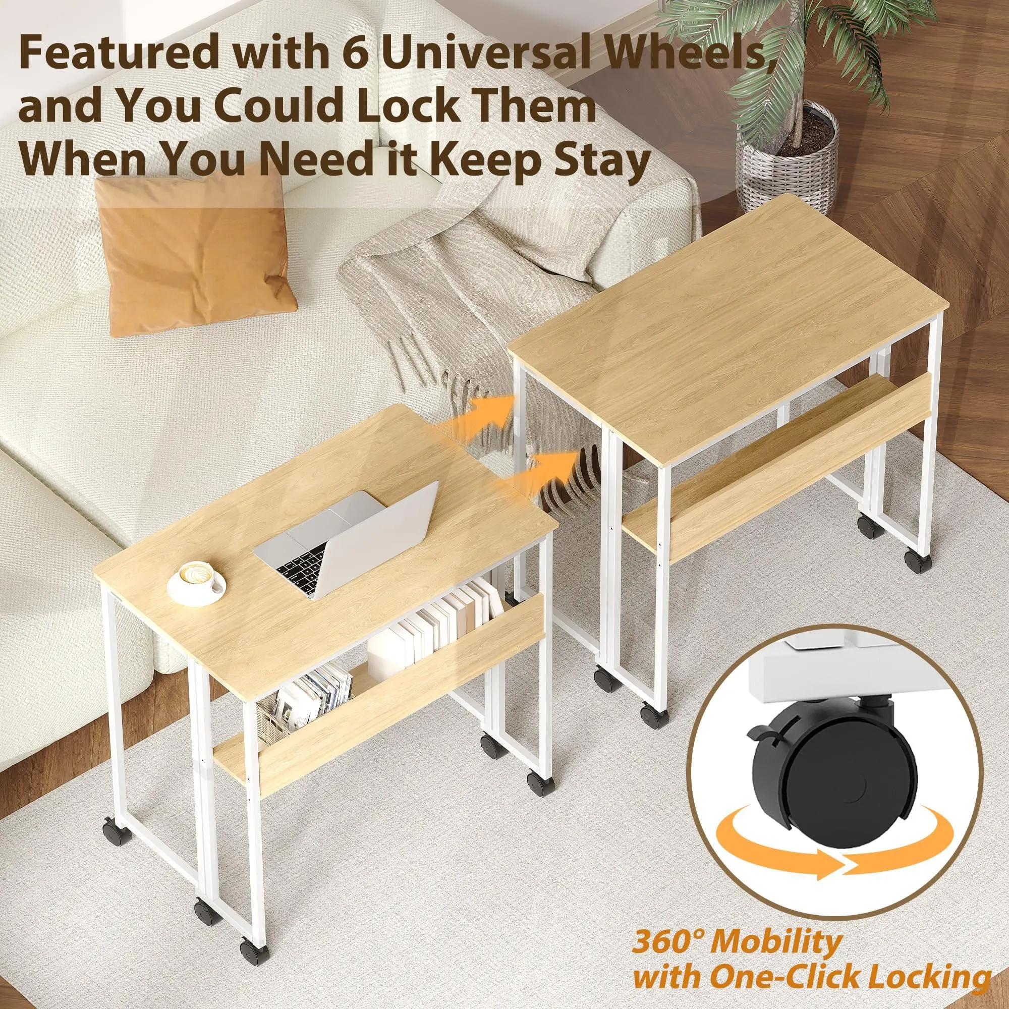 Roll Anywhere & Lock in Place with 6 Smooth Casters:Move your entire workstation with a single push! Equipped with 6 high-quality 360° swivel casters, this desk glides effortlessly on any floor surface—hardwood, tile, or carpet. When you find the perfect spot, simply the individual wheel brakes for instant, rock stability during work, study, or crafting sessions.