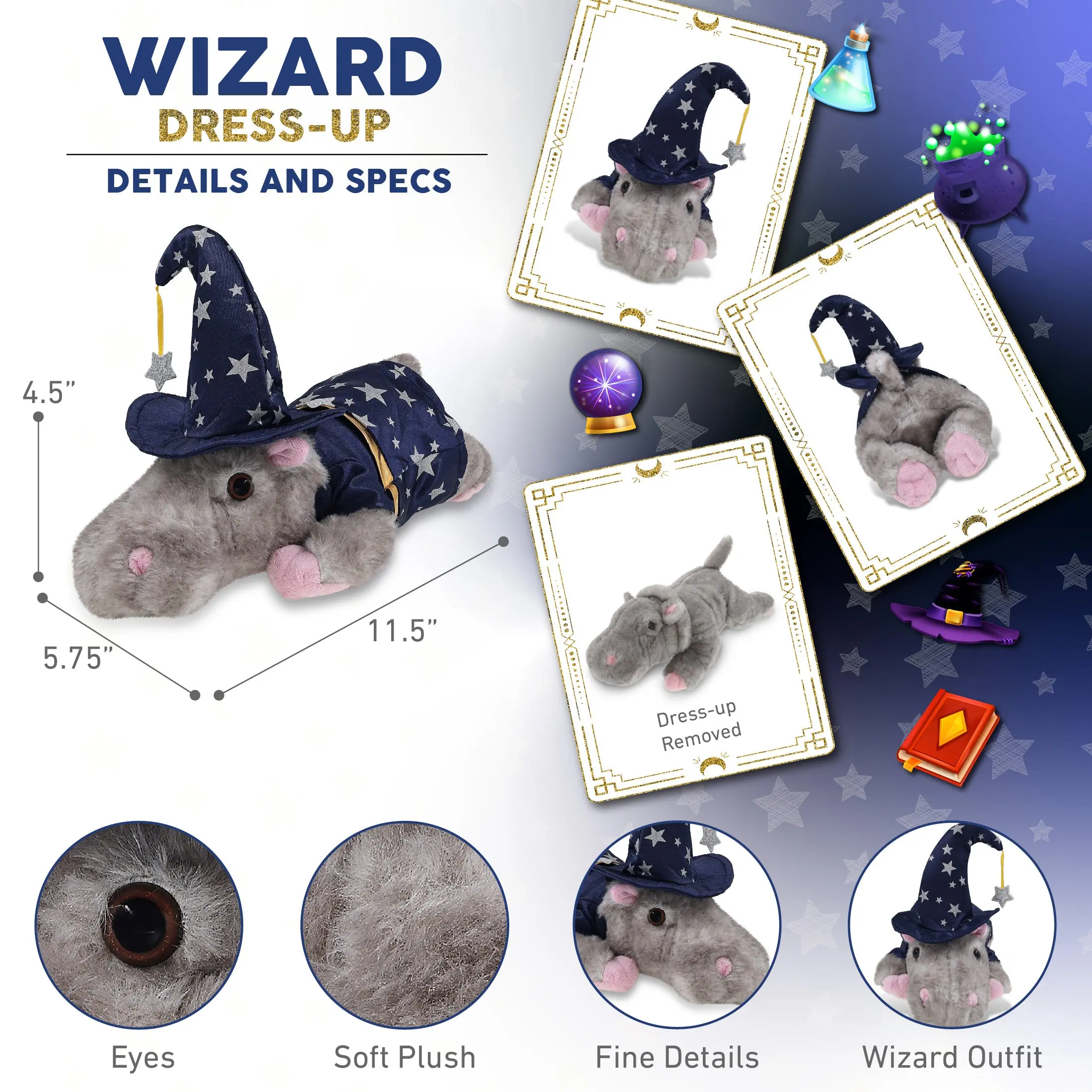 ·Includes 1 DolliBu Hippo Toy with Wizard Stuffed Animal Clothes - This hippo plush animal arrives in magical wizard hippo clothes. Dressed in a blue wizard robe and pointy hat, this hippo stands out in any plush toy collection. It's a great gift for Halloween, birthdays, or magical pretend play. The wizard doll clothes can be easily dressed or undressed for dress-up play. This cute hippo plush wizard buddy measures 11.5Lx5.75Wx4.5H inches.