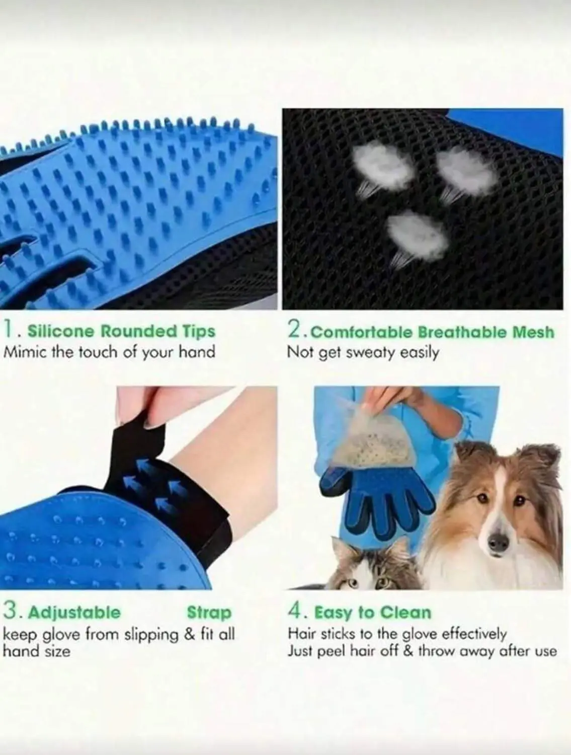 ·Pet grooming glove for right hand designed to gently remove loose hair while massaging dogs and cats. Ideal for deshedding during bath or dry grooming. Comfortable fit and easy to clean.