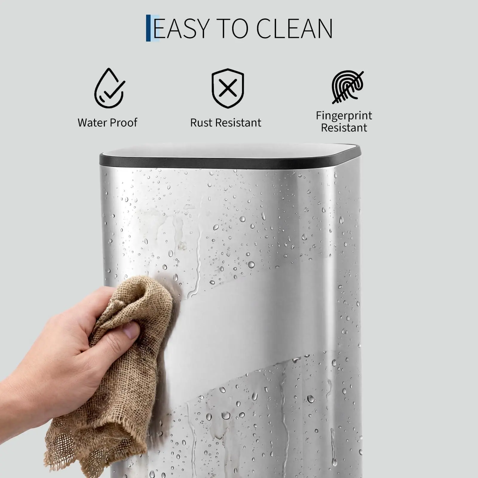 Durable stainless steel with fingerprint-resistant coating keeps your kitchen trash can looking sleek and clean.
