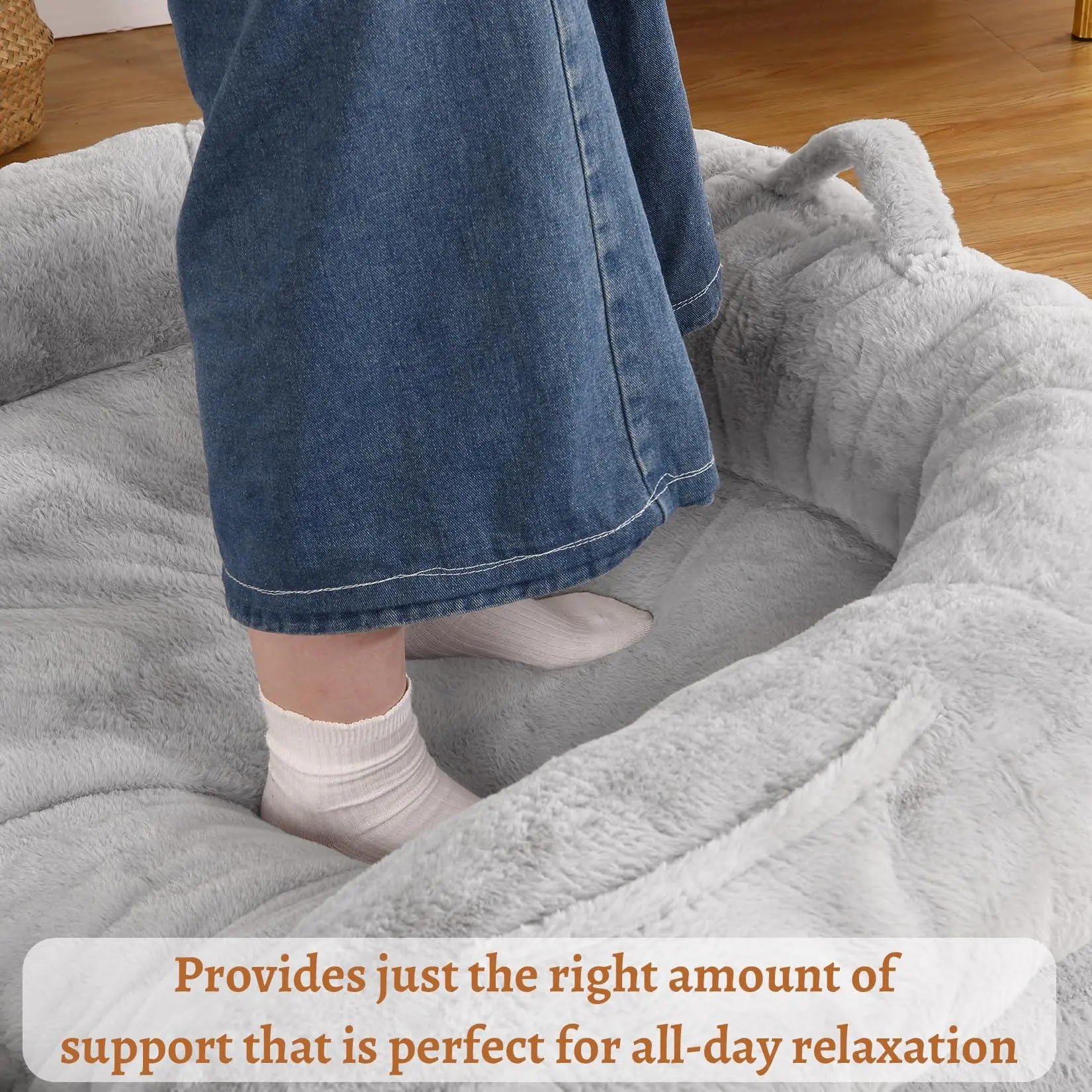 【FOLDABLE DESIGN】The giant dog bed is convenient to fold in half for easy storage and transport. With its portable handle and foldable design, the dog bed can cozy up any space including your bedroom, living room and workspace. Whether you're napping, reading, working, or watching TV , it offers continuous comfort and relaxation.
