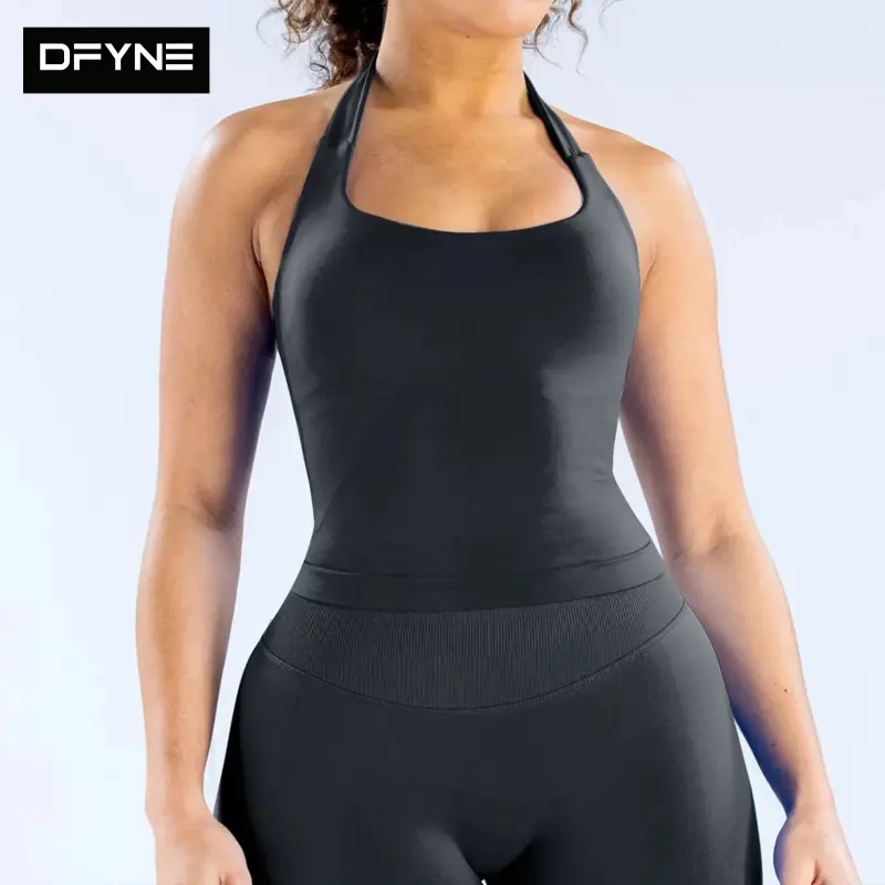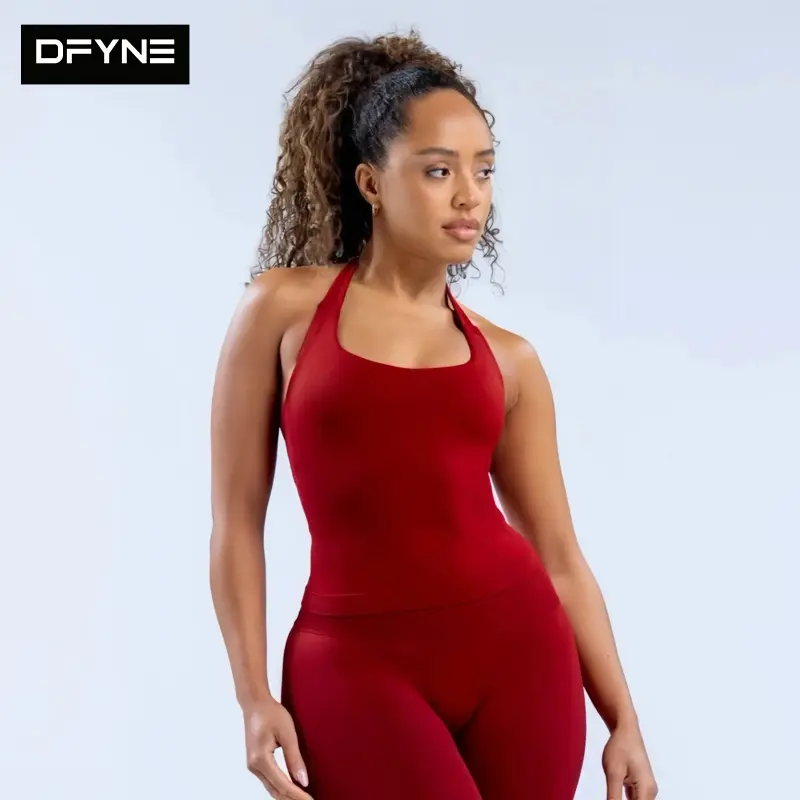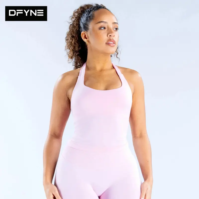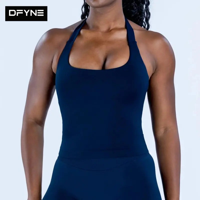 DFYNE Impact Halter Top (Full Logo) – Modern Halter Style Workout Top