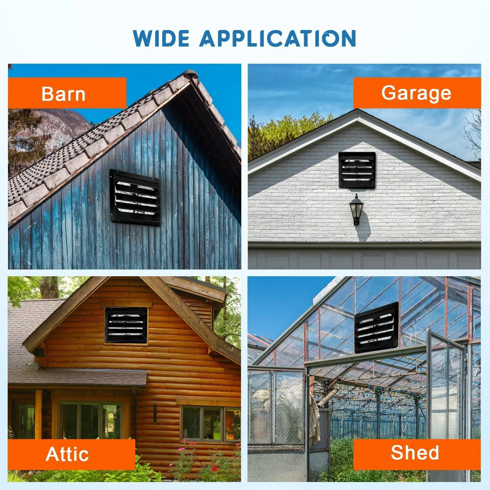 【Multi-Purpose】: This energy-efficient exhaust fan for garage circulates air effectively to reduce temperatures and improve air quality, serving as an attic vent fan and garage vent fan for homes, attics, garages, greenhouses, sheds, basements, workshops, and more.