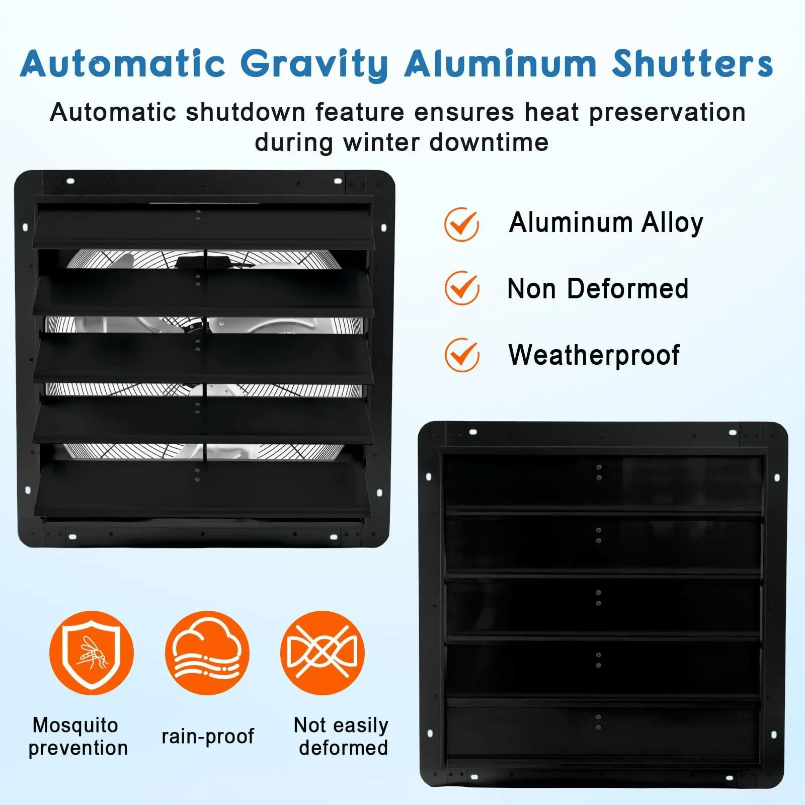 【Automatic Protection Design】: Equipped with automatic self-closing shutters, this quiet attic exhaust fan opens and closes with operation, extending motor lifespan during downtime, perfect as a garage exhaust fan for year-round reliability.