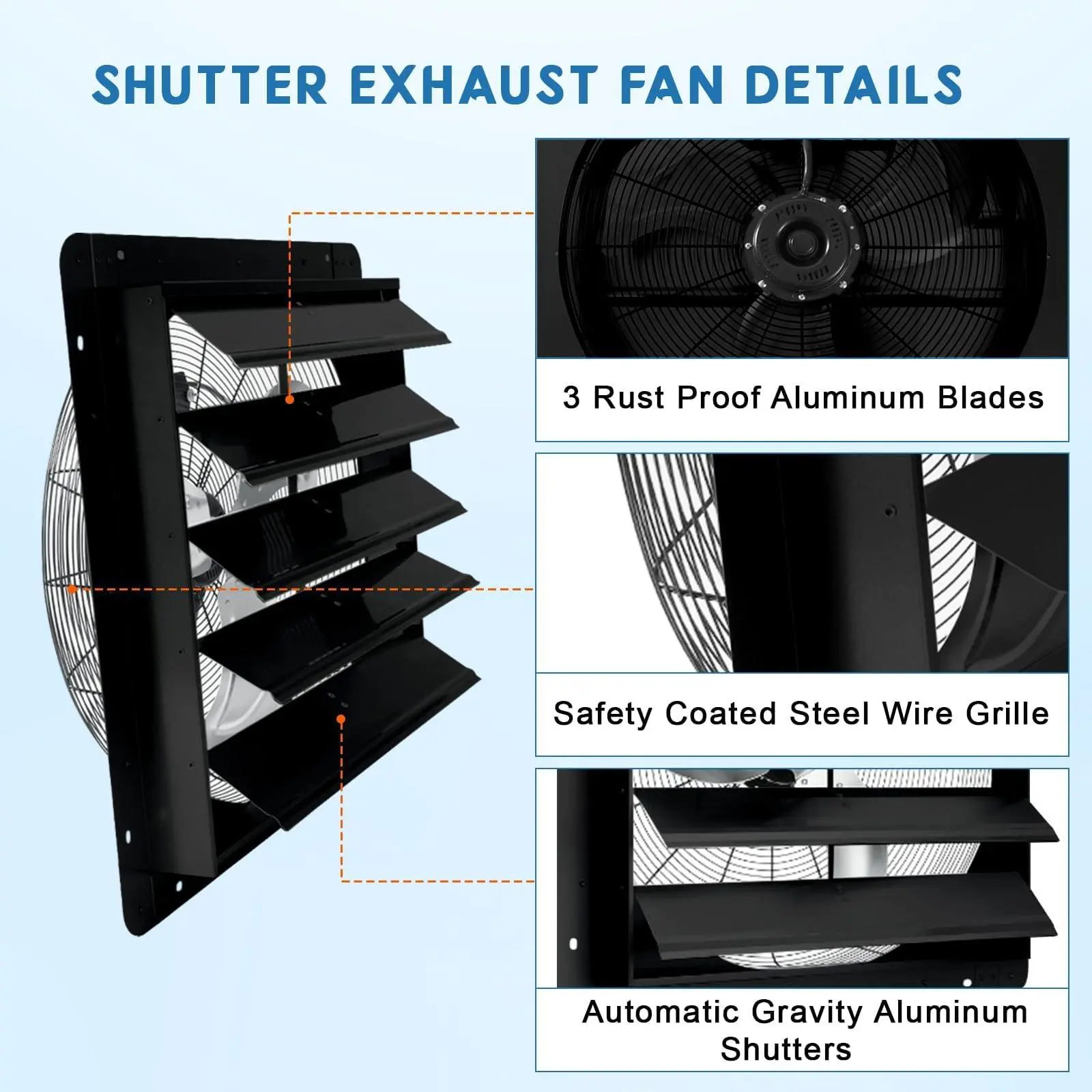 【Built to Last】: Constructed with high-grade aluminum blades, this durable garage exhaust fan through wall resists humidity, heat, and corrosive rust, ensuring long-lasting performance as a reliable shop exhaust fan in demanding environments.