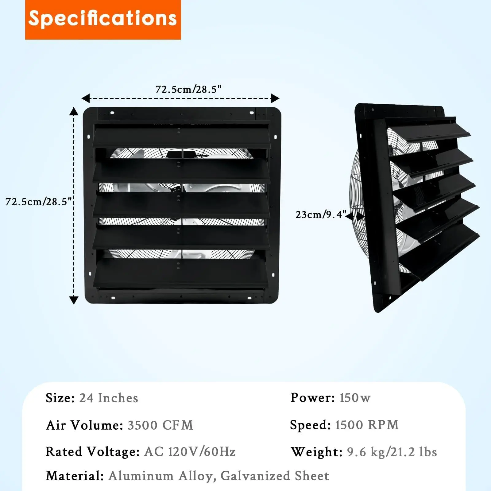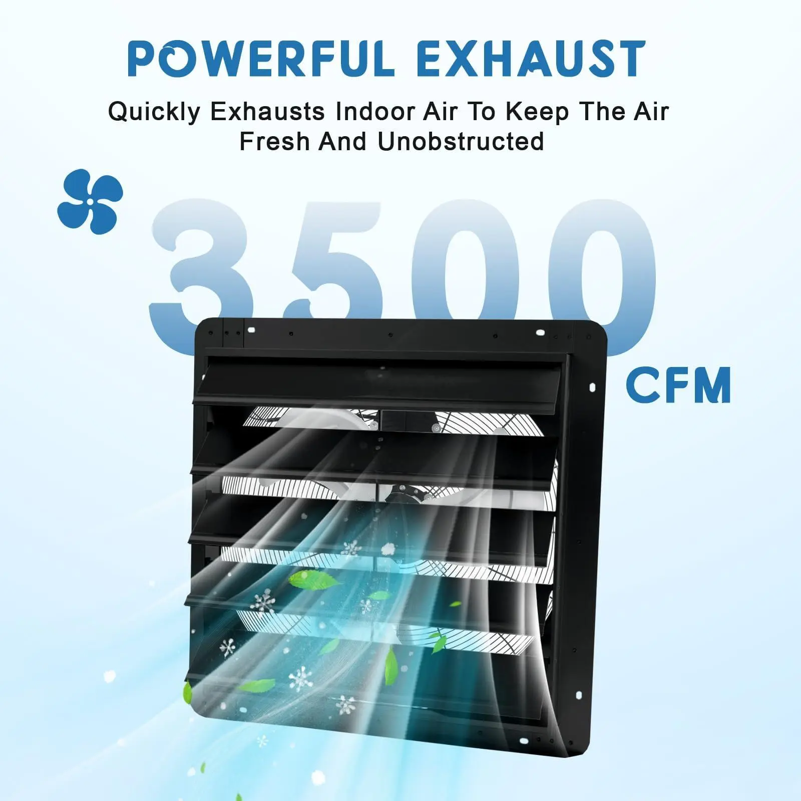 【Compact Yet Powerful】: This low noise 24in exhaust fan delivers impressive airflow at 3500 CFM and 1500 RPM, making it a powerful and efficient wall exhaust fan ideal for small to medium spaces like garages and attics.