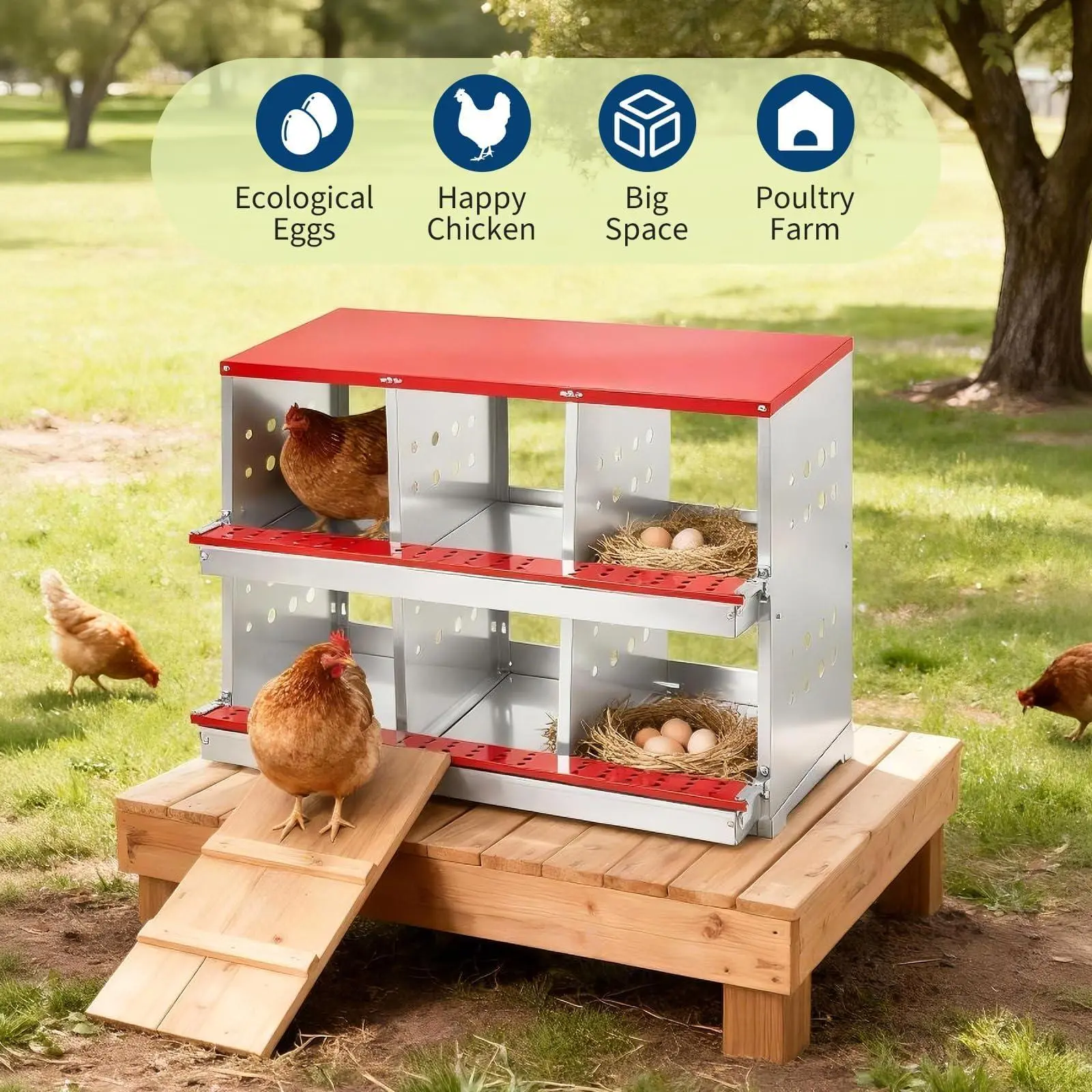 Innovative Egg Collection System:Features a gentle 7° sloped design that automatically rolls eggs into a collection tray. This hands-free system keeps eggs clean, prevents breakage, and eliminates the need to disturb laying hens during daily harvests.