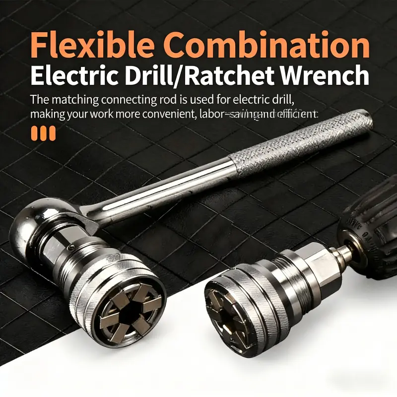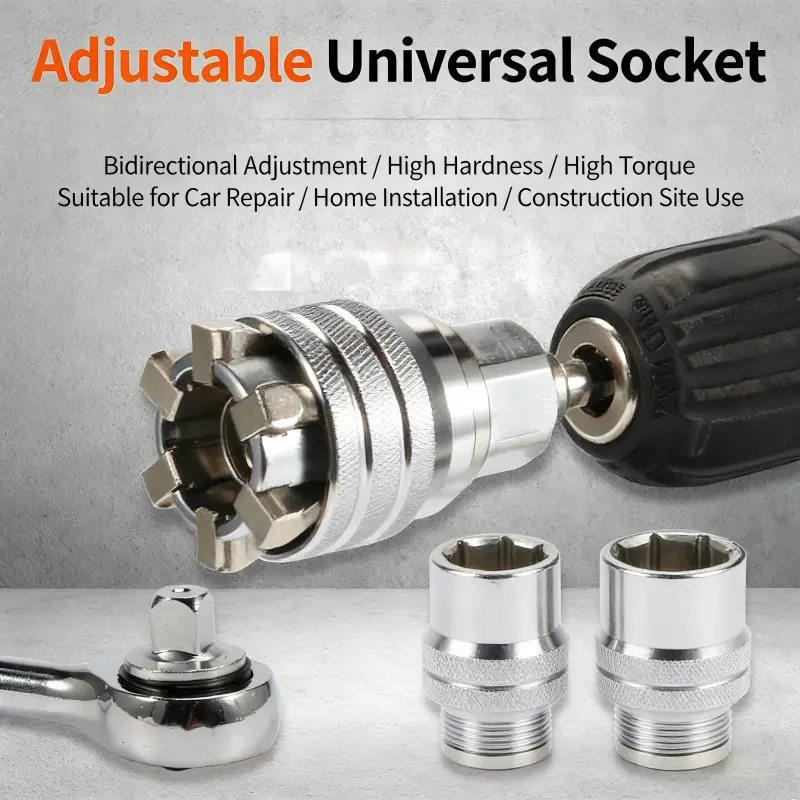 Multi-Functional Universal Socket Wrench Tool, Adjustable Universal Socket for 3/8 Inch Interface, Professional Repair Tool