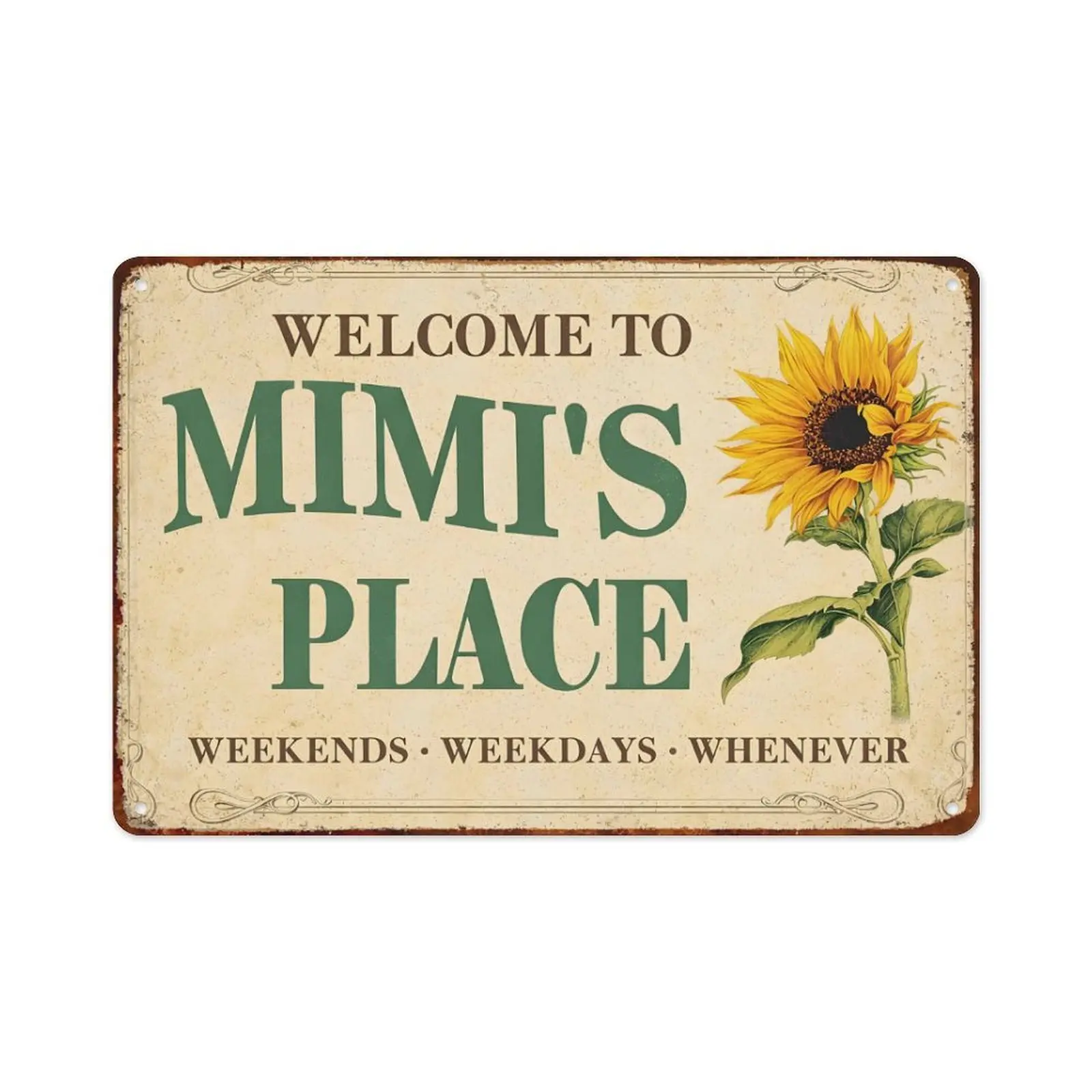 "Welcome To Mimi's Place" Vintage Sunflower Metal Sign, 8x12 Inch Retro Rustic Wall Decor
