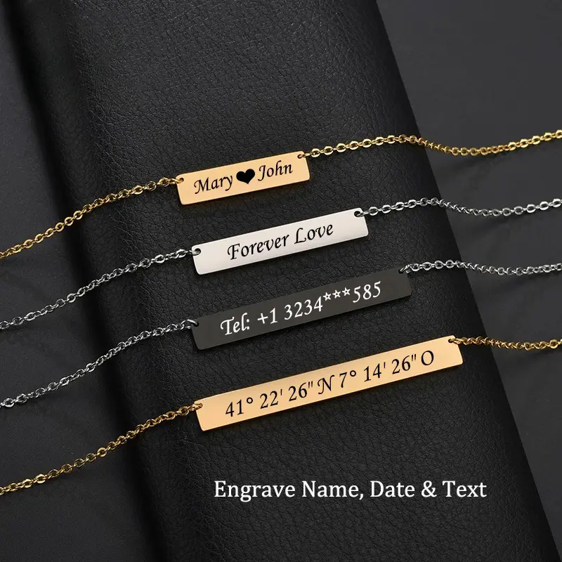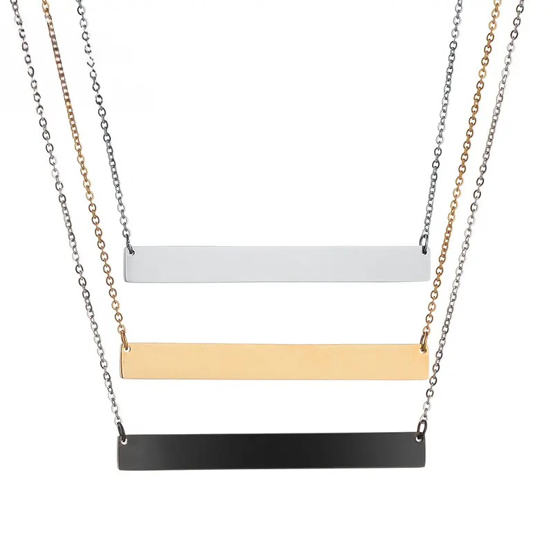 511 Customized Engraved Personalized Glossy Pendant Titanium Steel Rectangle Necklace Valentine's Day Gift
