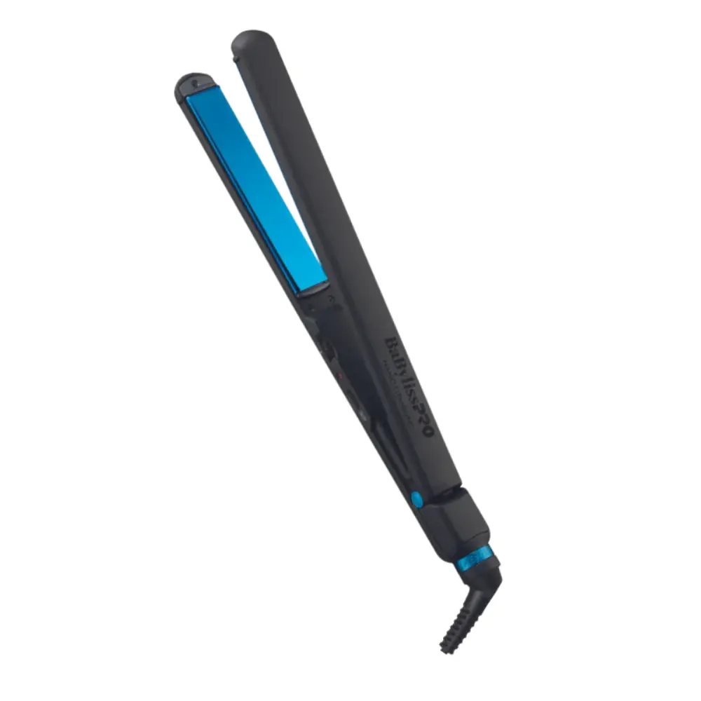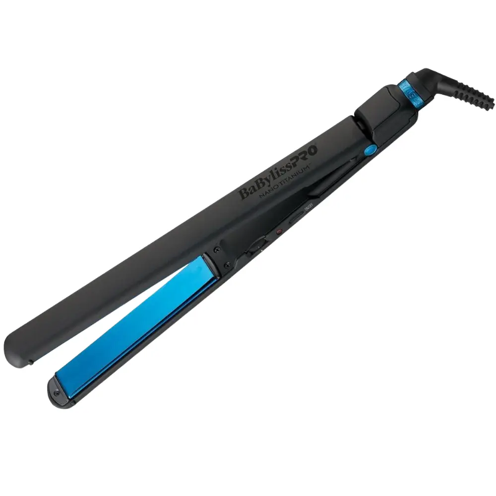 Achieve sleek, smooth, salon‑quality hair with the BaBylissPRO Nano Titanium Black & Blue 1" Ultra‑Thin Flat Iron #BNTMB4072TUC a professional tool designed for both stylists and at‑home users. Engineered with ultra‑efficient Nano Titanium™ plates, this flat iron heats quickly and distributes high heat evenly, delivering radiant shine and frizz‑free styles every time. Its slim, lightweight design and extended 5" plates make straightening faster, while 50 adjustable heat settings up to 450°F accommodate all hair types from fine to coarse. With a 9 ft swivel cord and dual voltage capability, this styling iron offers maximum comfort and flexibility wherever you go.