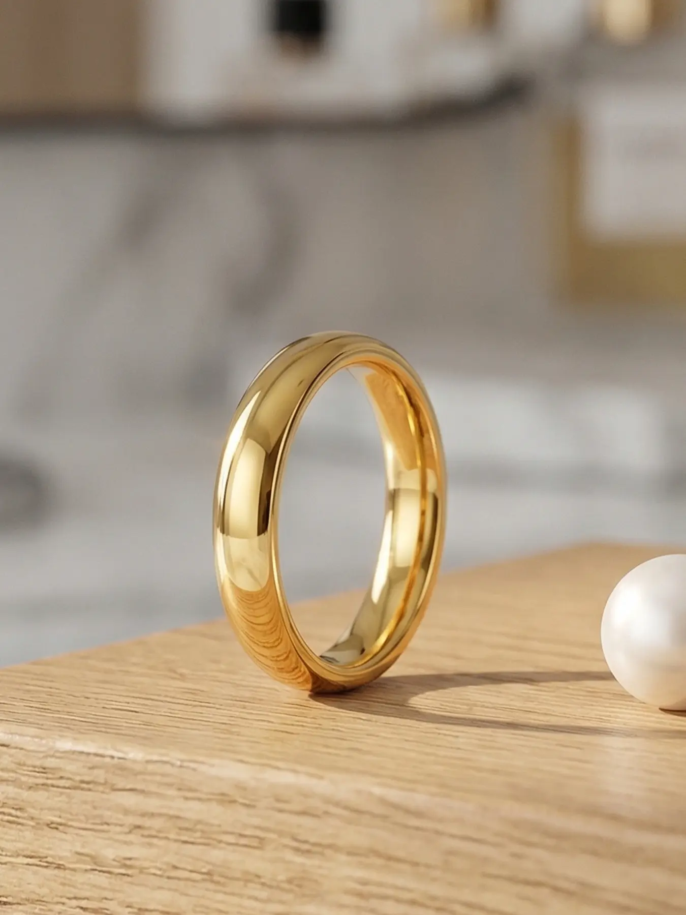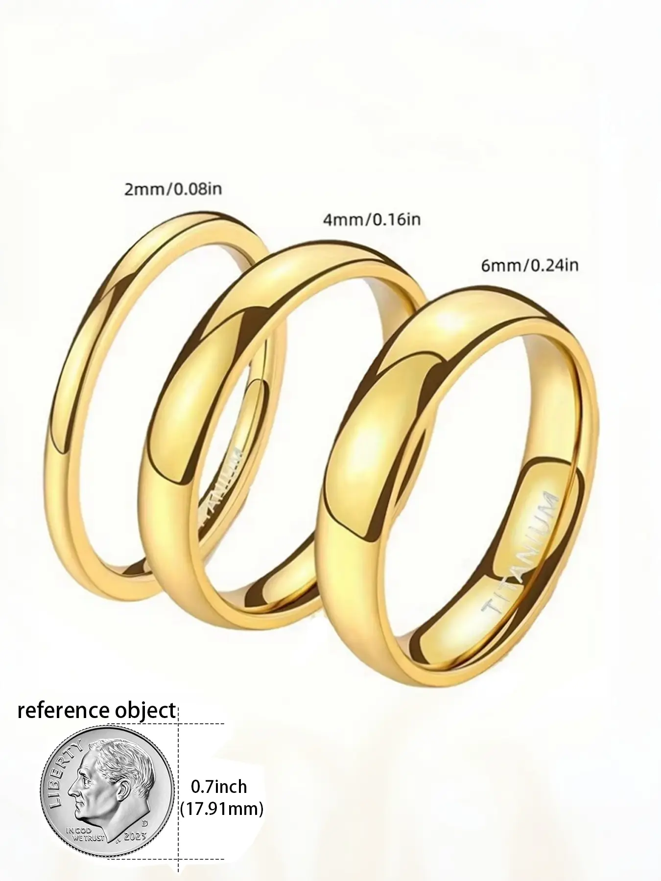 3-piece 18K gold stainless steel plain ring, high-end and niche, elegant ring with a smooth surface, high-quality jewelry ring / stainless steel material / colorfast / hypoallergenic / couple's style / suitable for festivals / parties / ideal gift