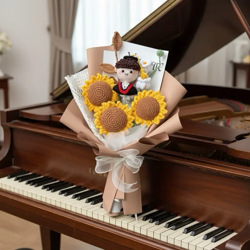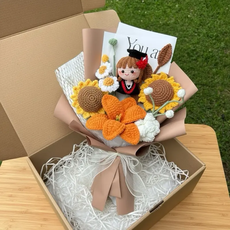 Each bouquet is handmade, ensuring a one-of-a-kind piece. The crochet work is intricate, making it a standout accessory. It's a thoughtful gift for graduates, symbolizing their achievements. 🌸