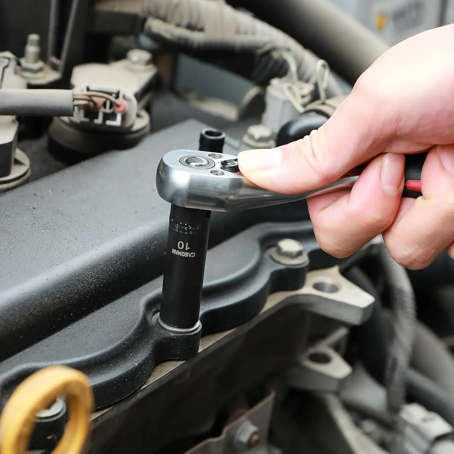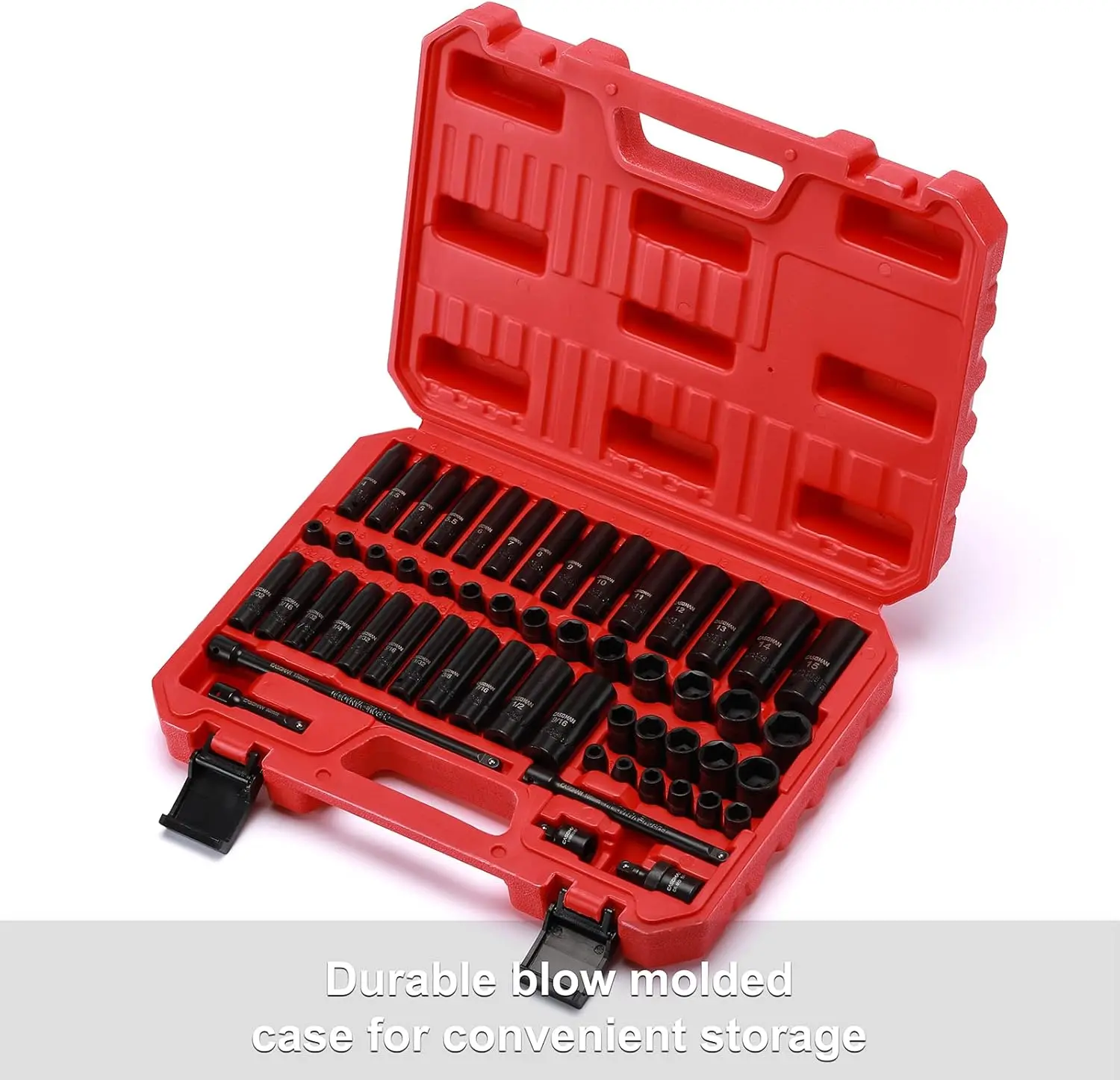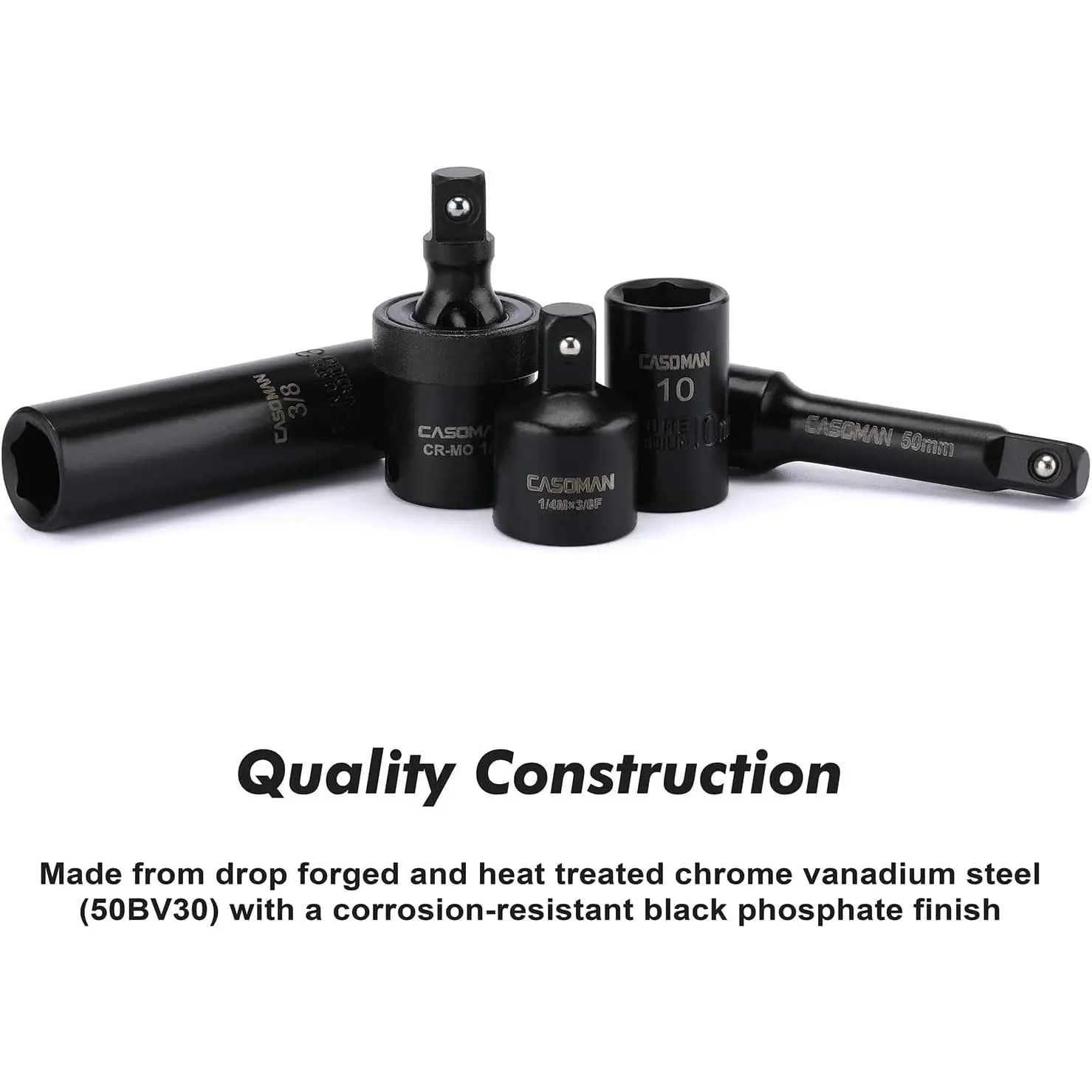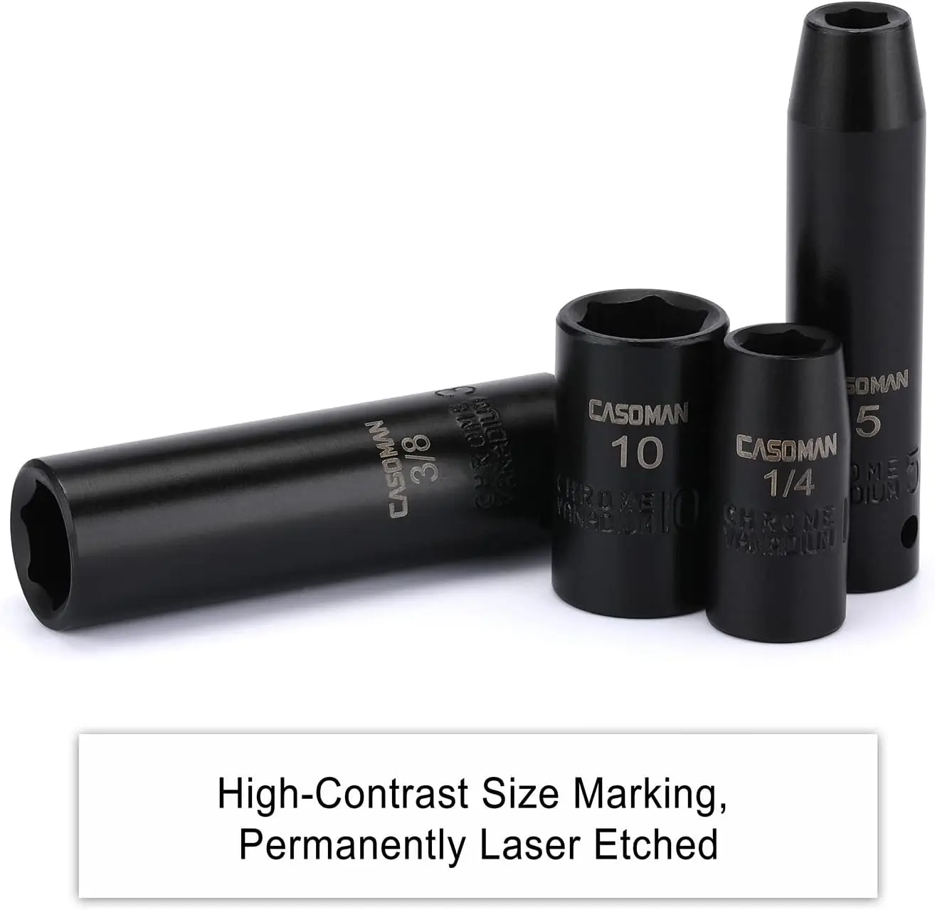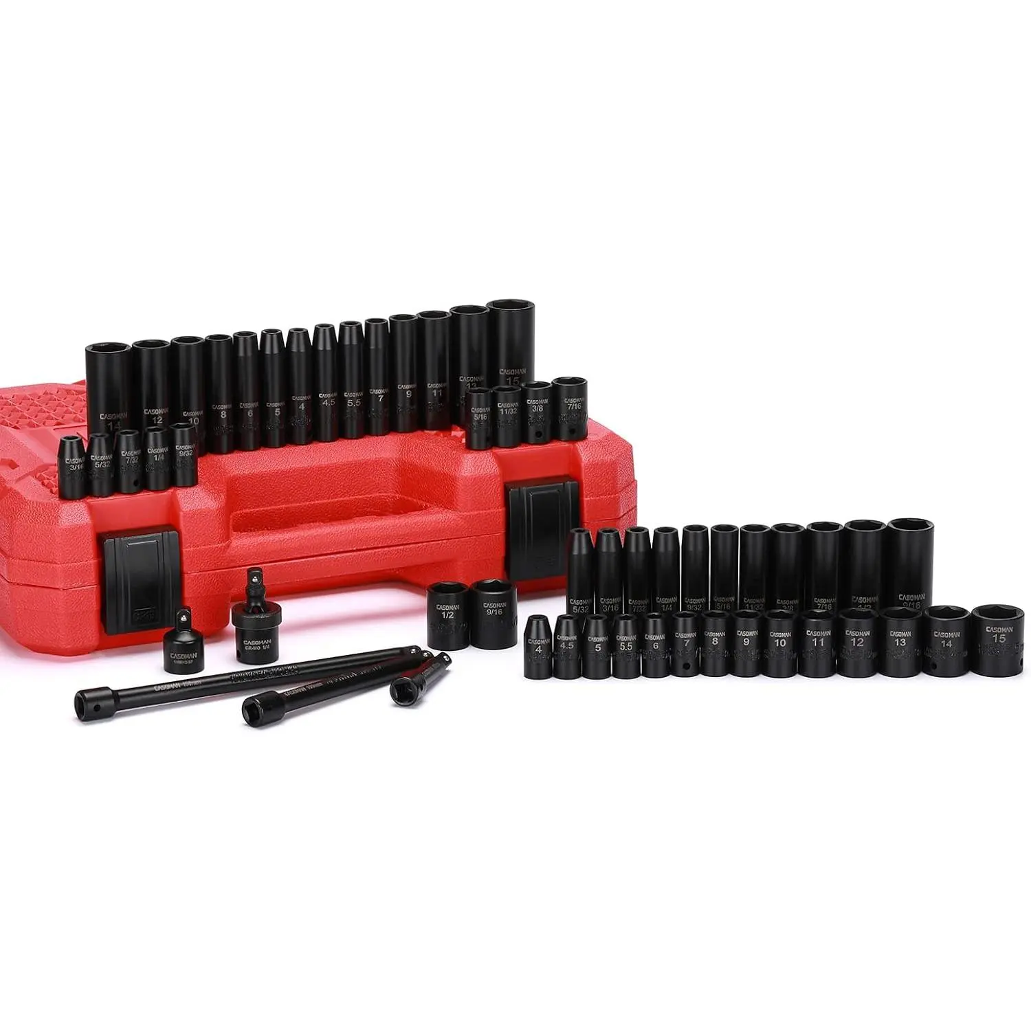 ·CASOMAN 55PCS 1/4-Inch Drive Impact Socket Set, Shallow & Deep, 5/32 Inch - 9/16 Inch, 4mm - 15mm, Metric/SAE, 6-Point, Cr-V Steel Socket Set