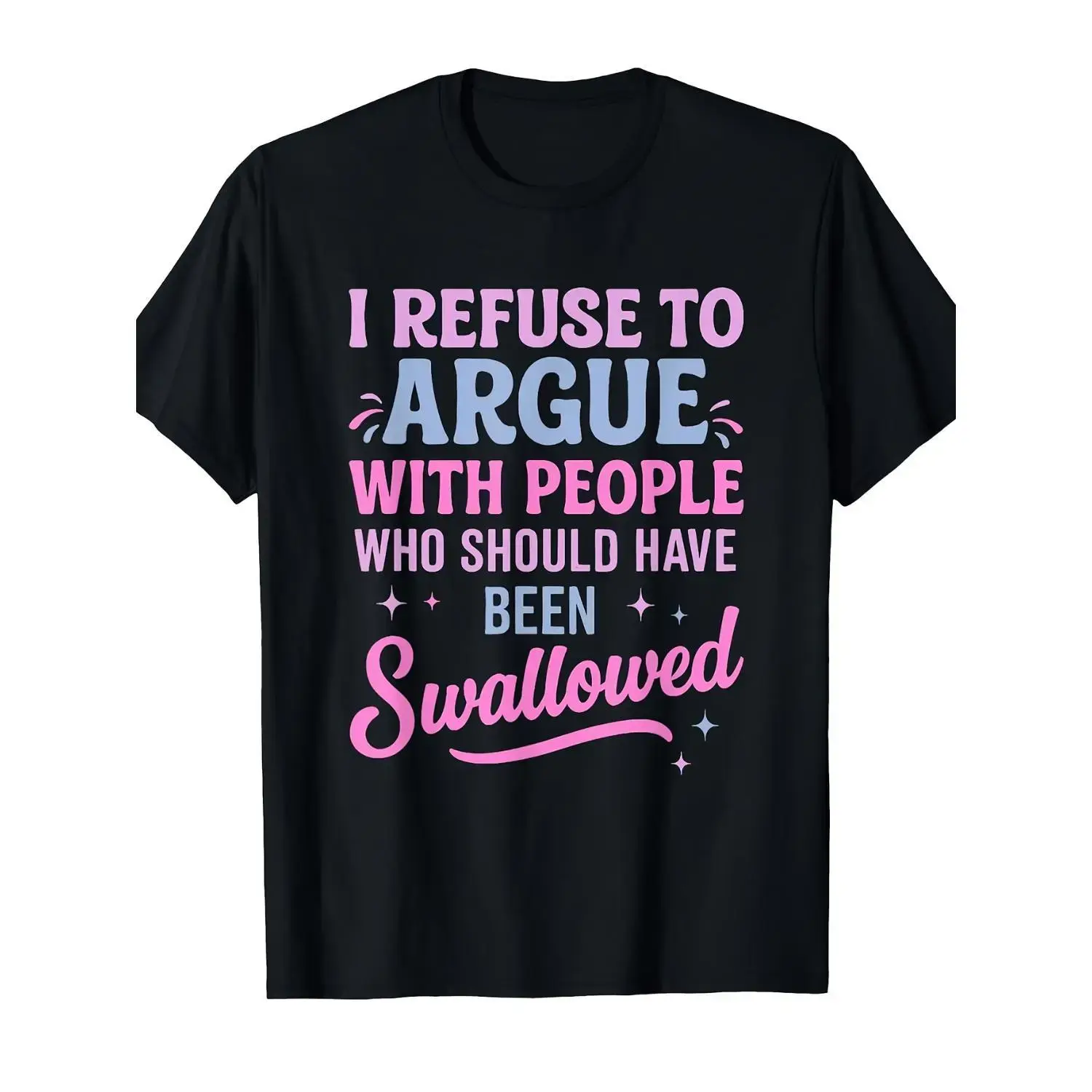 Refuse to Argue with Unworthy People Sarcastic Mens Tee Casual Short Sleeve Round Neck Top Black Pink Blue Lettering