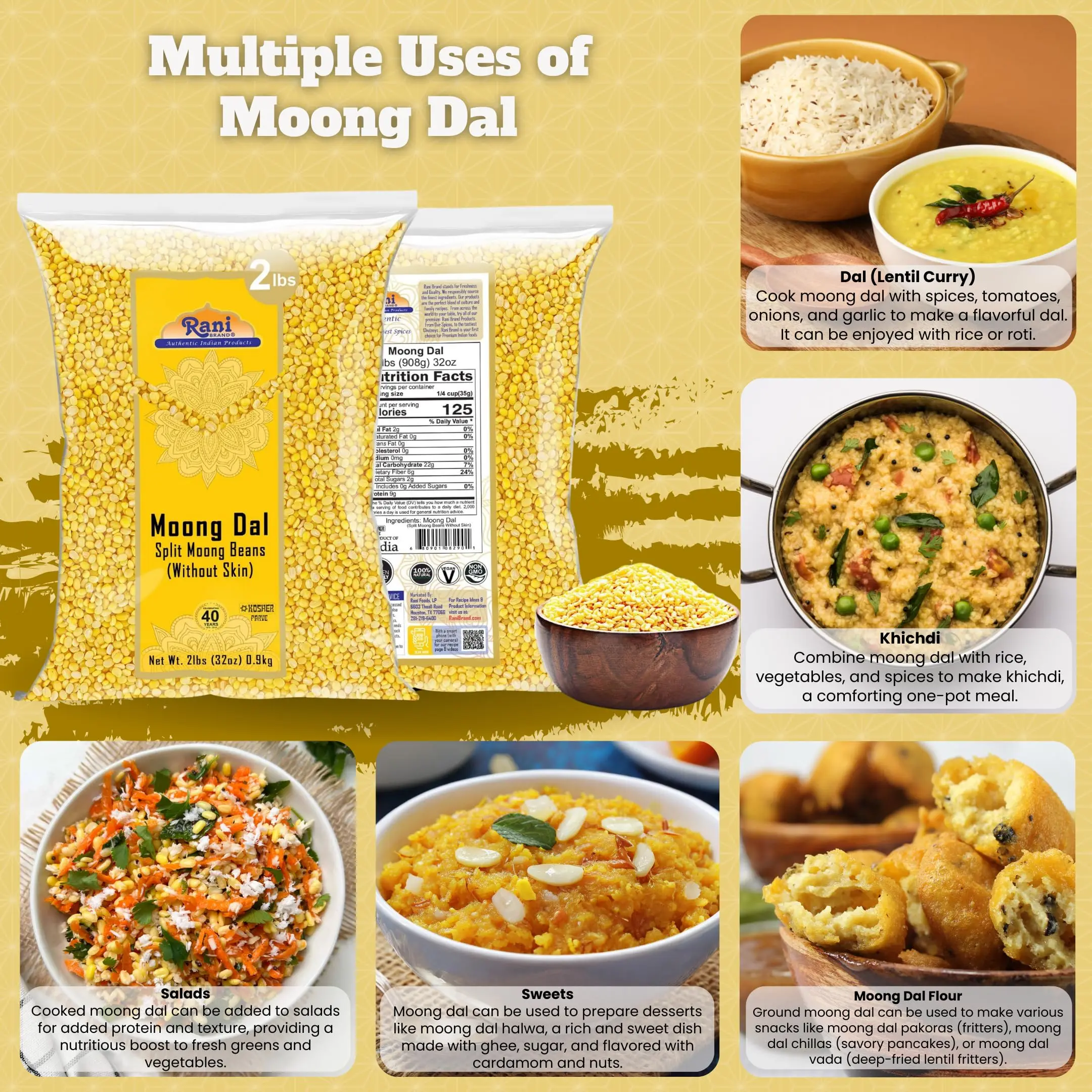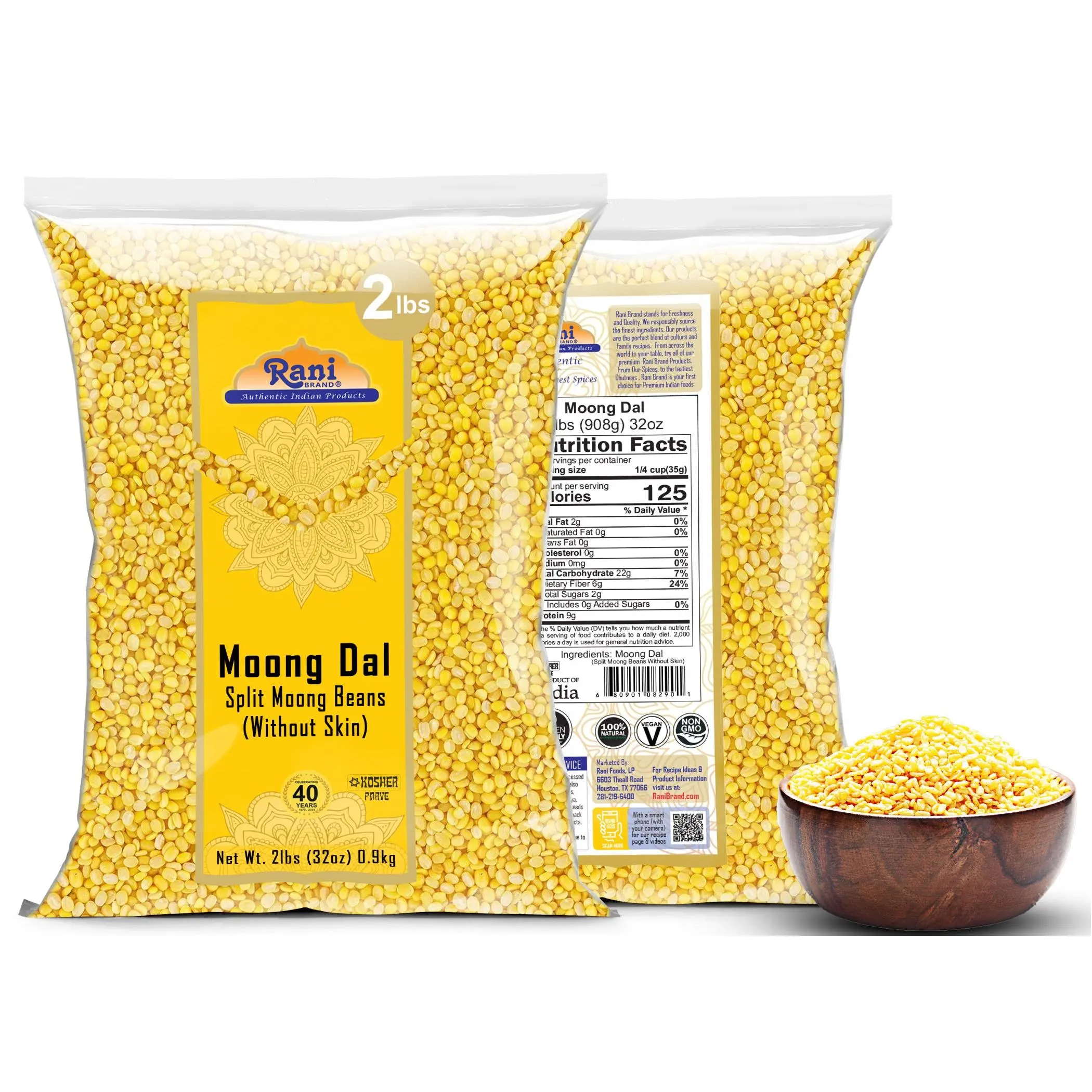 ·🥘Net Wt. 32oz (2lbs) 907g, Alternate Names: Yellow Moong Dal, Mung Dal, Dhal Washed