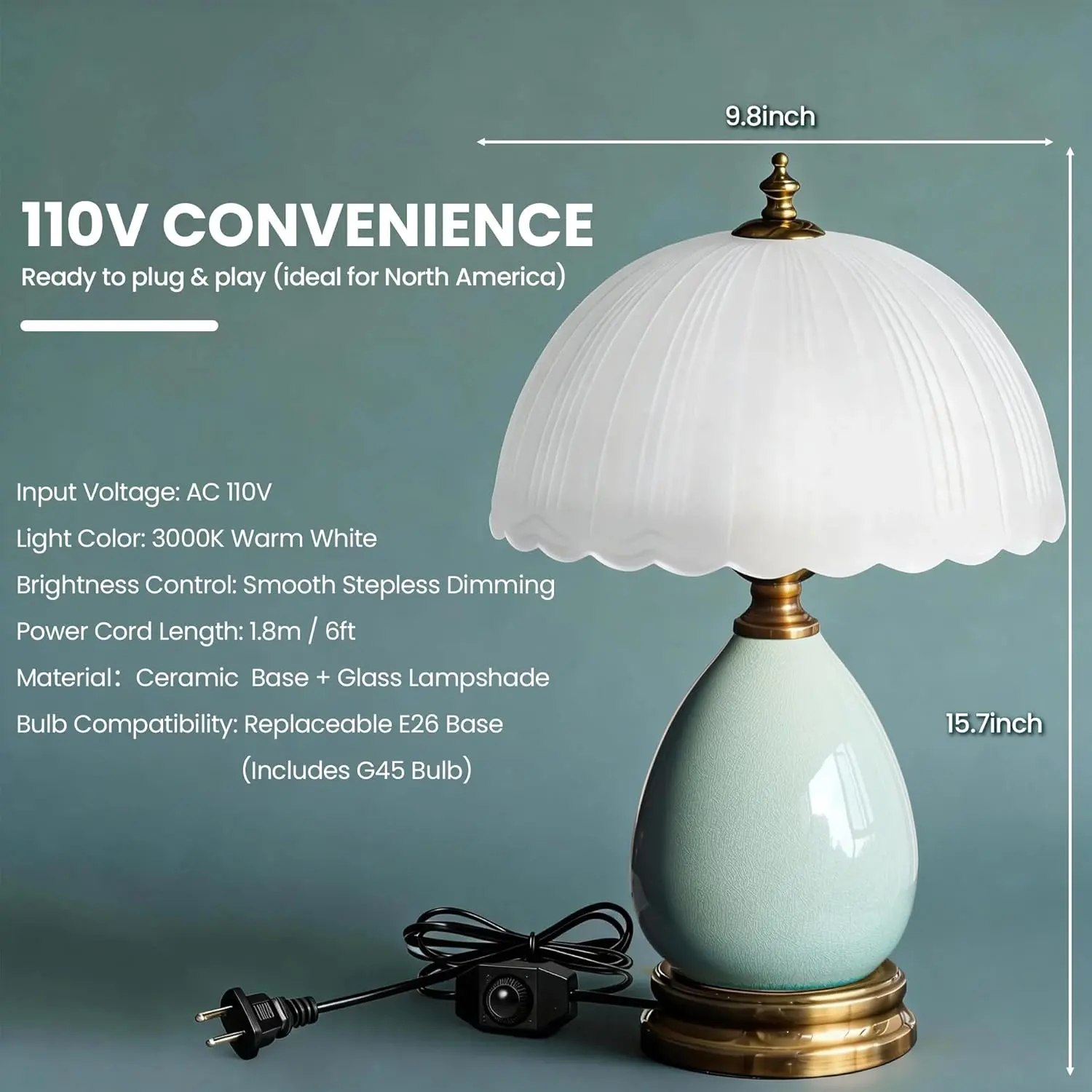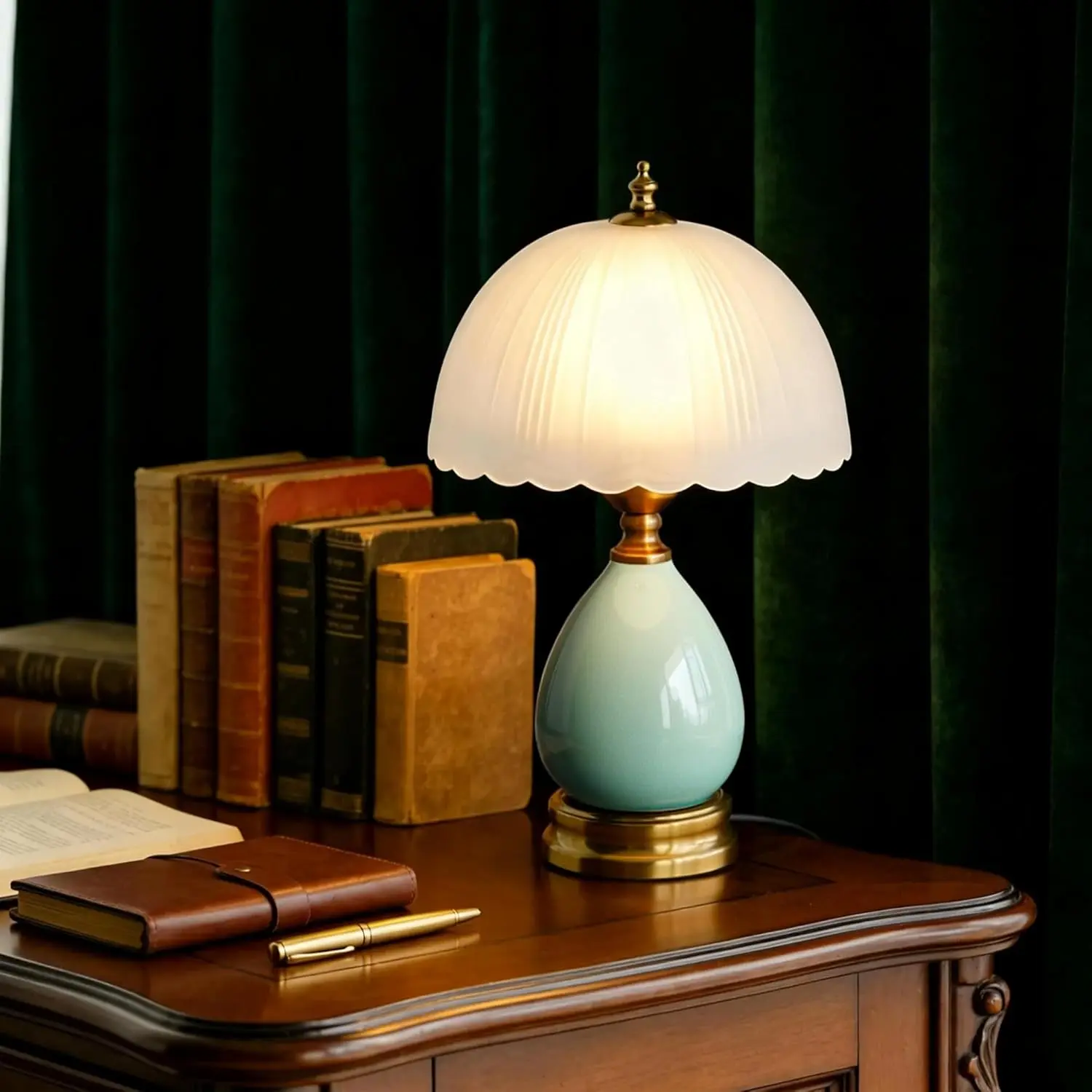 Vintage Lamp for Living Room,16" Modern Ceramic Table Lamps for Bedroom,Retro Bedside Nightstand Traditional Lamps, Classic Chinoiserie Green Lamp for Home Decor