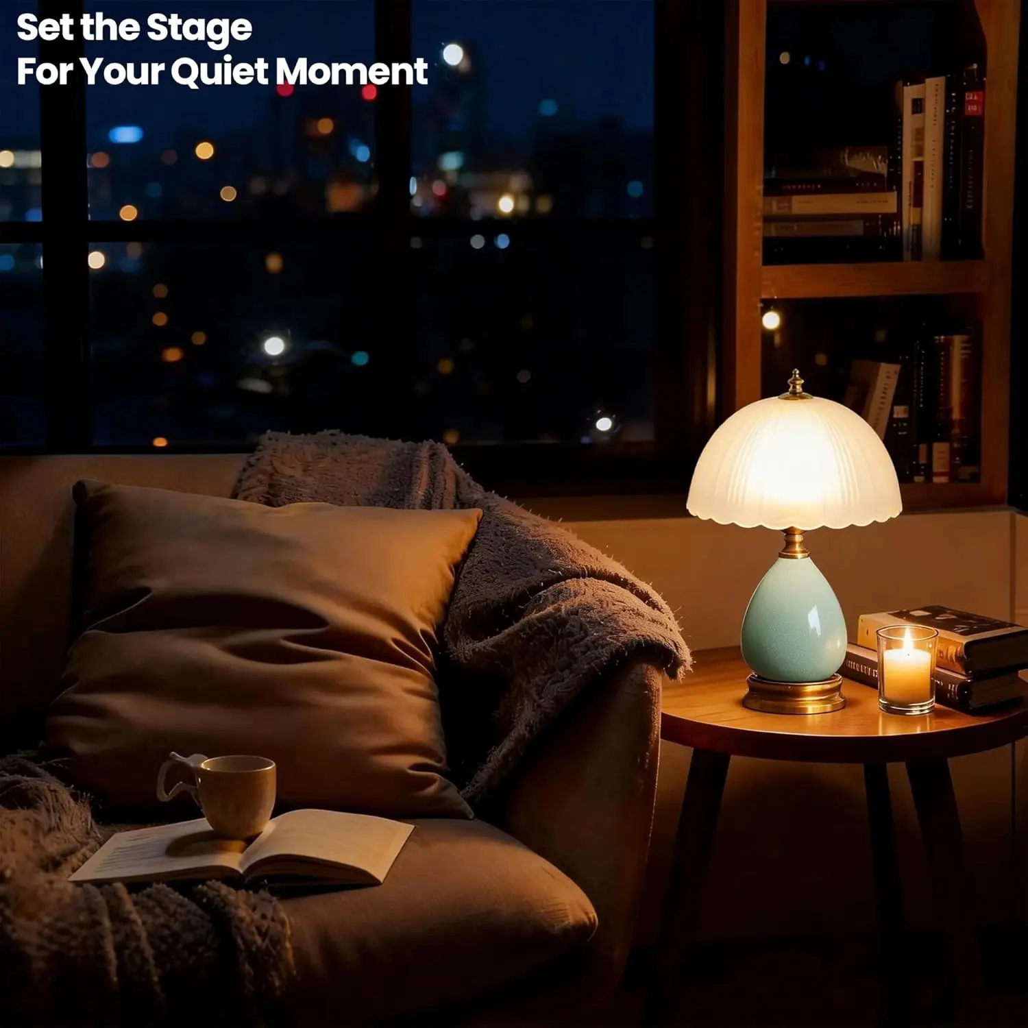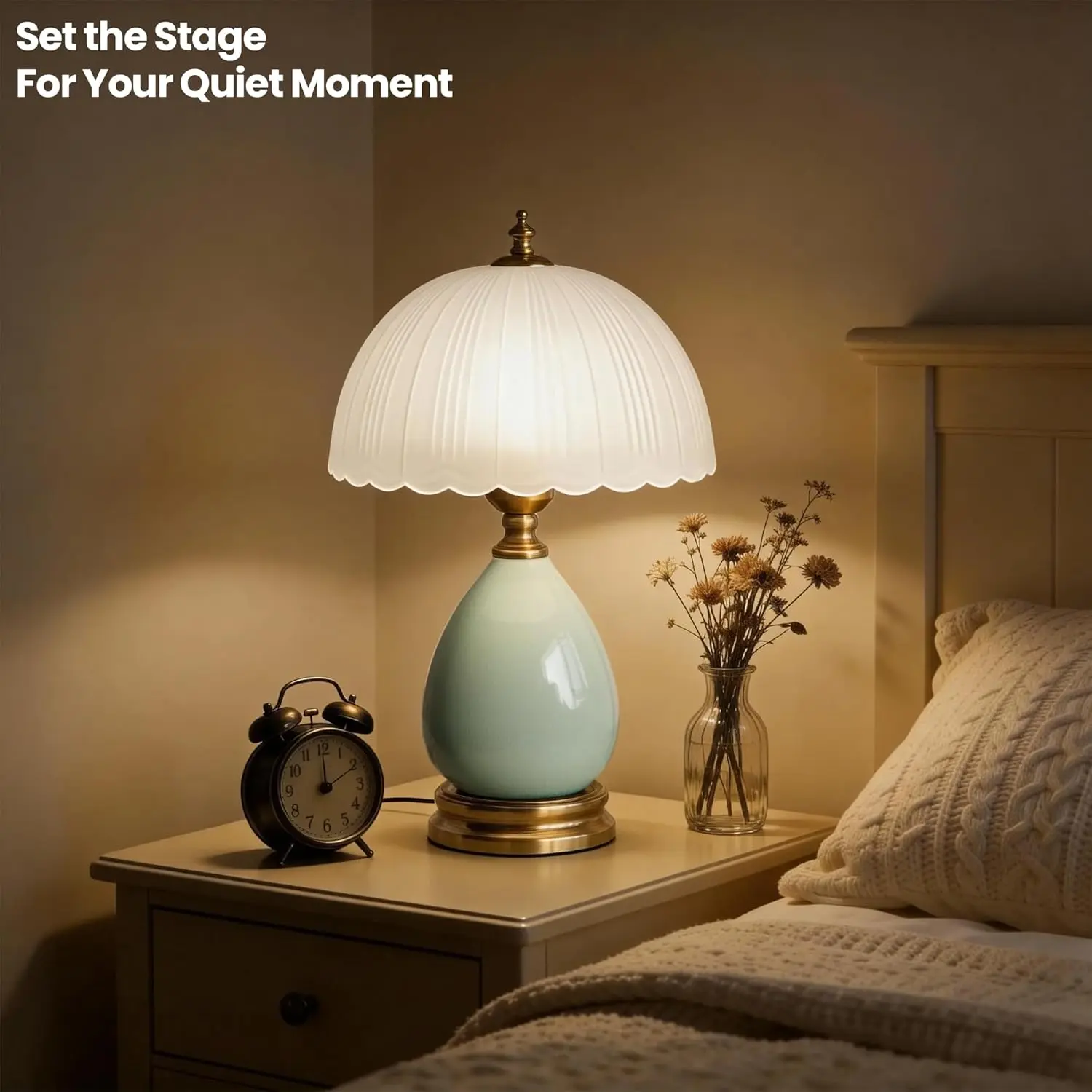 Ceramic Table Lamp Modern Vintage Lamps for Bedroom Living Room with Frosted Glass Lampshade, Desk Bedside Small Lamps for Living Room Night Stands Bedroom