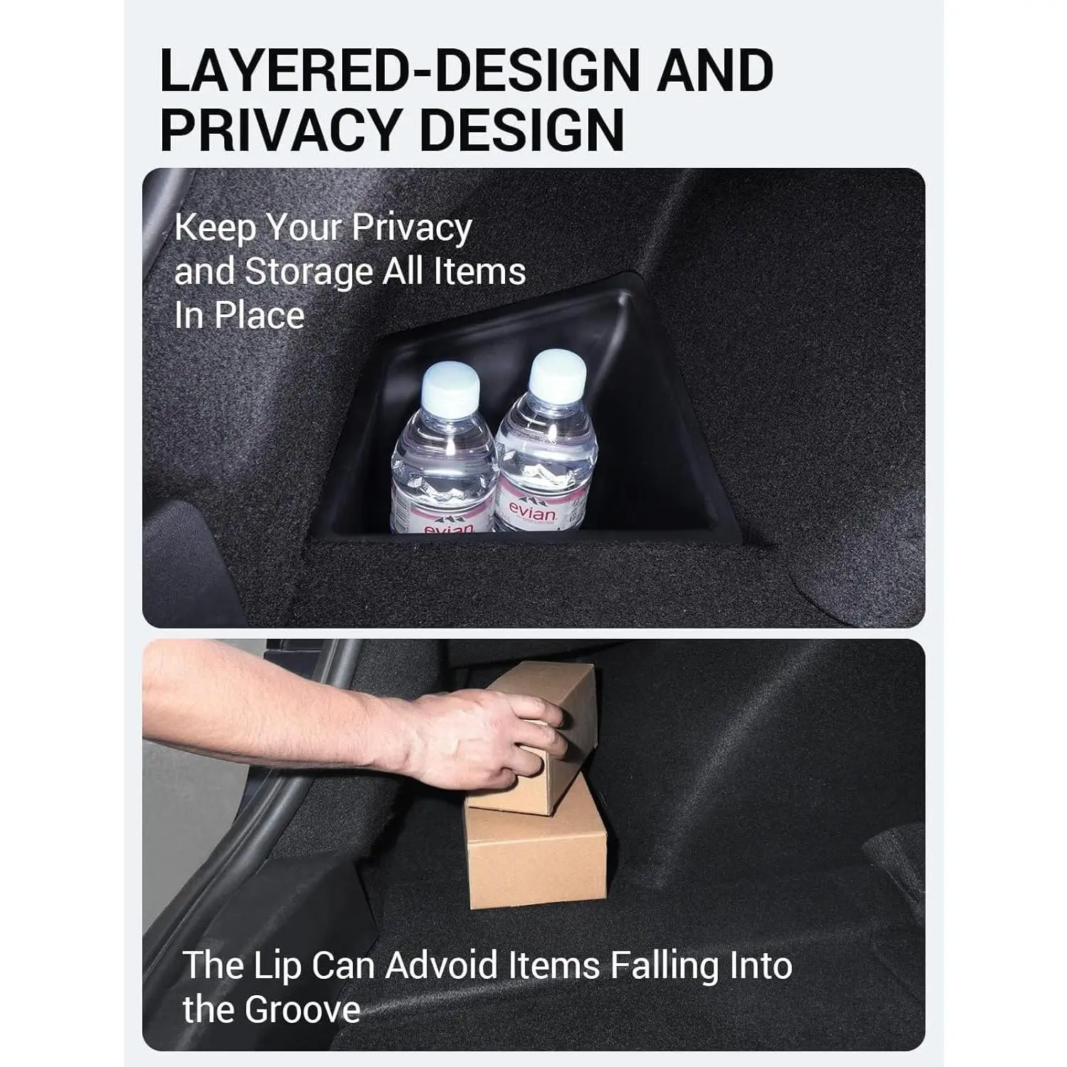 🌱 CERTIFIED SUSTAINABLE (Proprietary Design): Incredible Custom Design Loved by 500,000+ Tesla Owners. presents an exceptional line of Tesla Model 3 trunk side organizer bins with a one-piece molding technique, designed to fit 2021-2023 Model 3 vehicles (Not Fit 2024 2025 Model 3) Superior Protection & Performance: Protect your trunk space from dirt, dust, and shifting items. Our organizer is built to keep your gear secure and your Model 3 interior looking clean and clutter-free Ample Storage Elegance: Store essentials like cables, tools, umbrellas, and kids' toys with ease. This side storage bin keeps your rear trunk neat and everything in place-without sacrificing space or style Luxurious Material Fusion: Enjoy premium craftsmanship with our Tesla Model 3 trunk organizer, made with a soft, high-grade TPE base and a stain-resistant flocked top. Flexible yet durable, it resists deformation even when squeezed Thoughtful Detail Mastery: Quick to access and simple to install-no tools needed. Featuring a convenient drawstring cover, this organizer adds practical utility and refined design to your Tesla’s interior