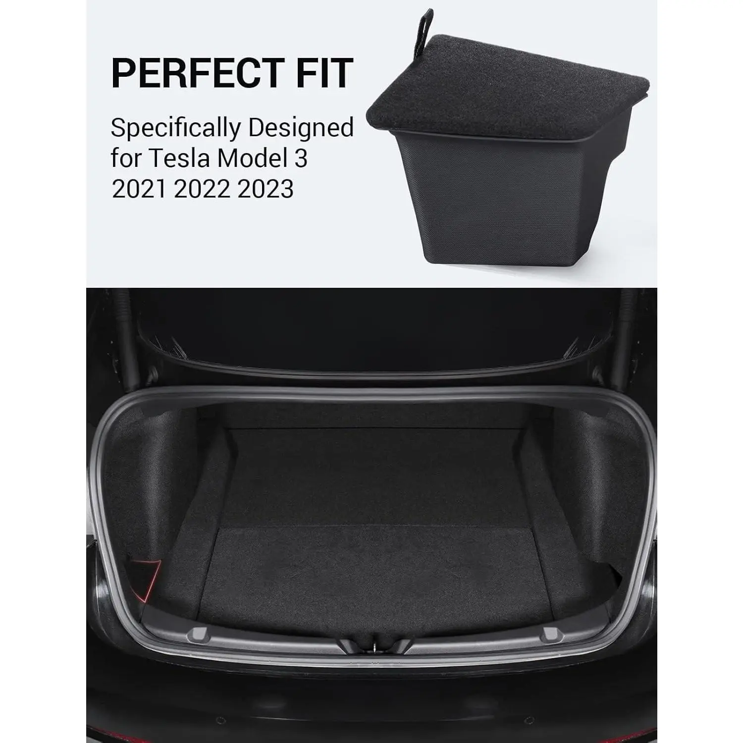 2023 2022 2021 Tesla Model 3 Trunk Storage Bin, Trunk Organizer with Carpeted Lid, Waterproof Rear Trunk Side Storage Box for Model 3 Interior Accessories