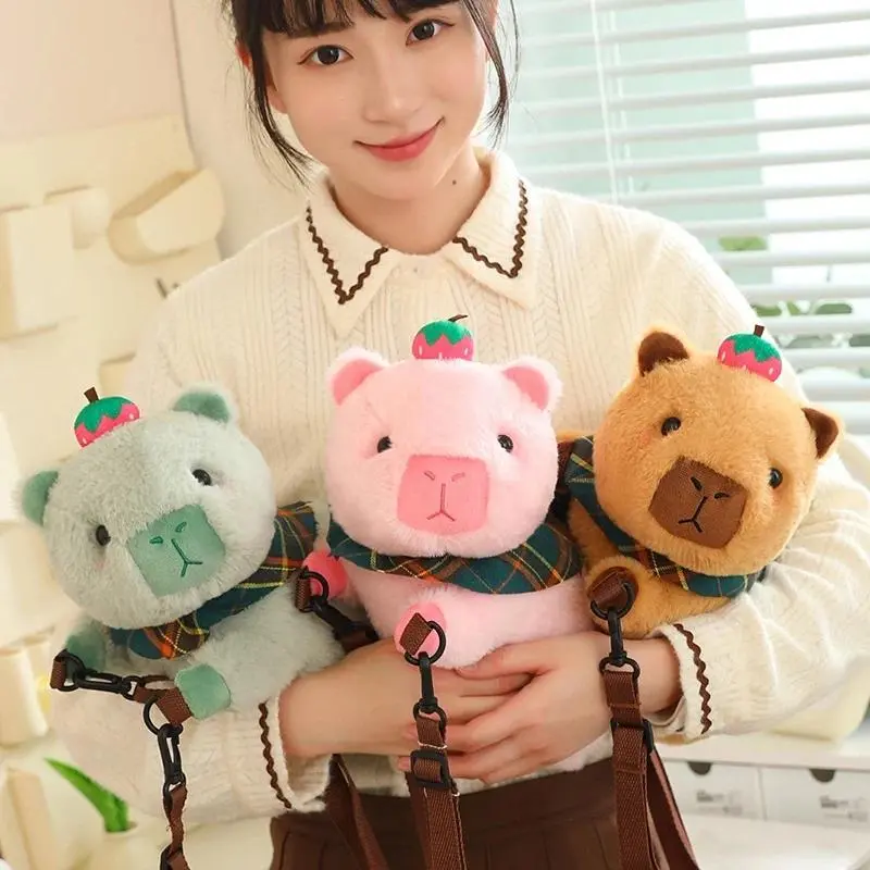 MyRytanda Kawaii Capybara Plush Backpacks Cute Animals Fuzzy Phone Bags Brown Capibara School Bags Childreen Birthday Gifts