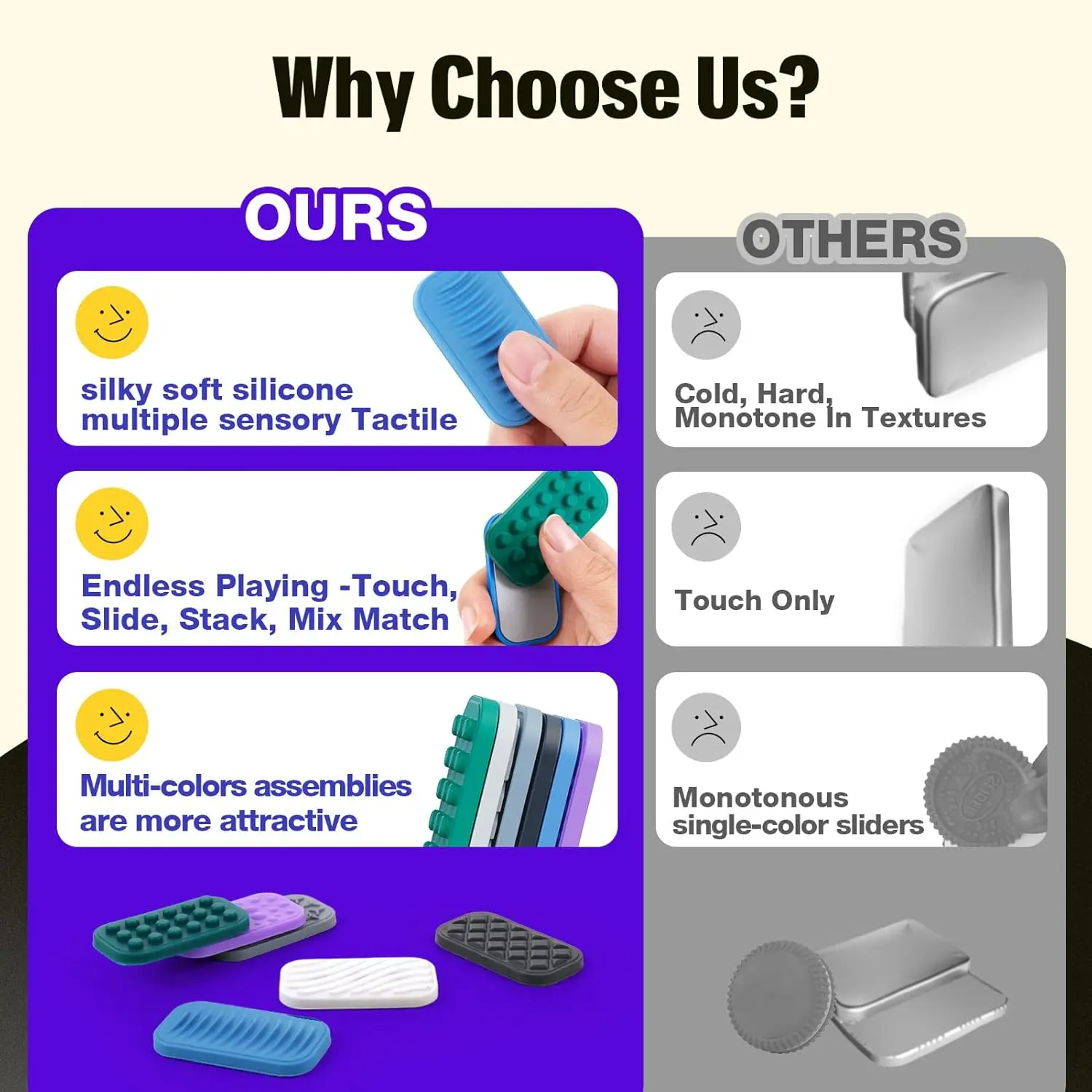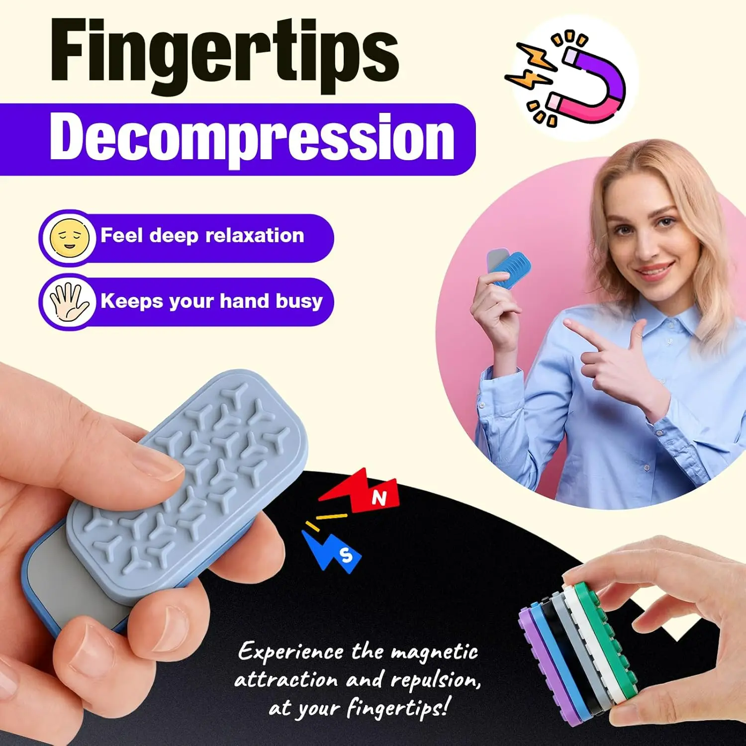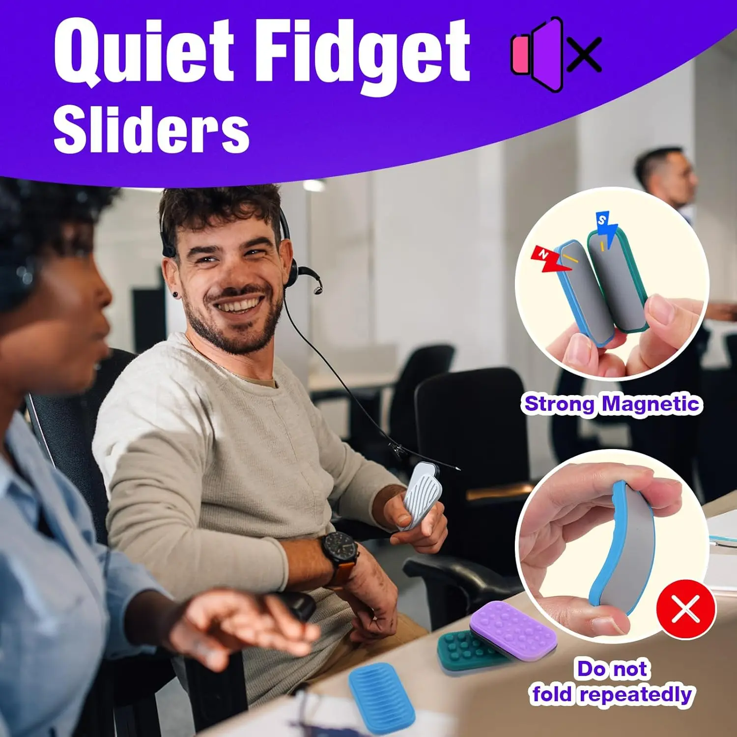 Magnetic Fidget Sliders 6 Pack: Sensory Textured Silicone Toys, Silent Stress Relief for Kids & Adults, Desk Toys for Office, Classroom, Travel, Easter Basket Stuffers