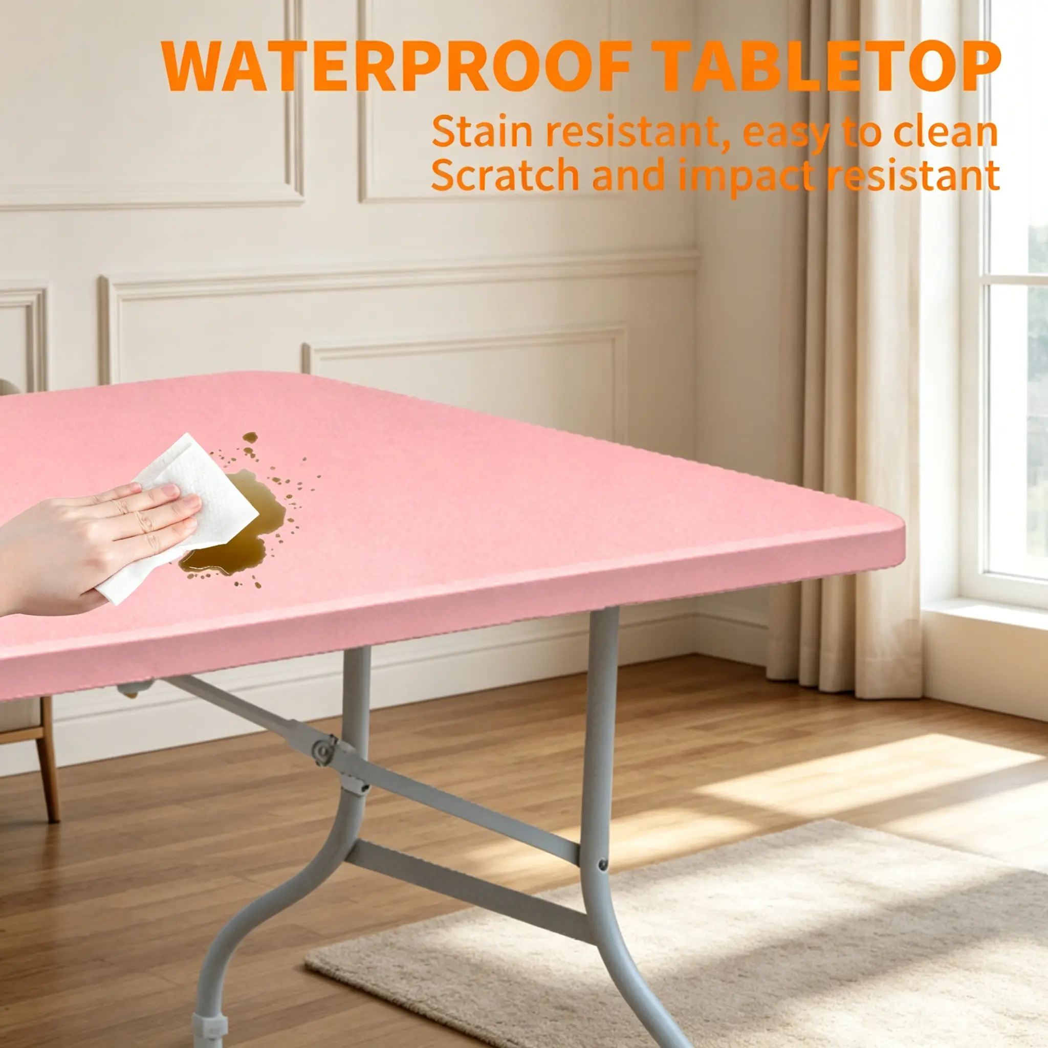 The smooth, waterproof tabletop is easy to clean with a simple wipe, making daily maintenance effortless. The sturdy triangular support structure under the table, constructed with thickened steel, provides greater strength and durability.