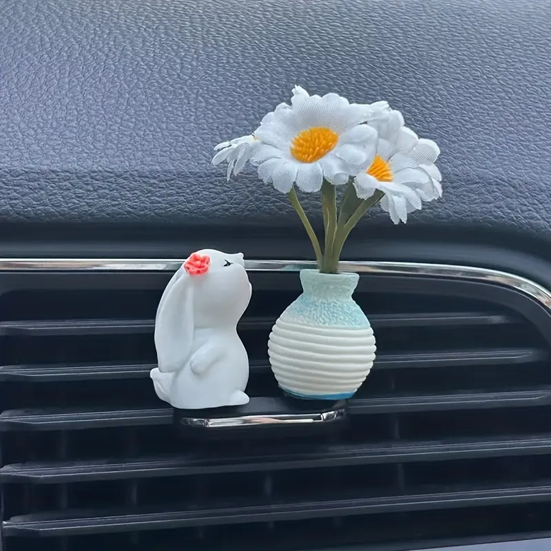 ·Fresh Scented & Aromatic Charm: The cute rabbit design often features a subtle scent cavity (or pairs beautifully with scented sticks), adding a fresh, pleasant fragrance to your car or room.The colorful daisy flowers enhance visual appeal, creating a lively, cheerful atmosphere.