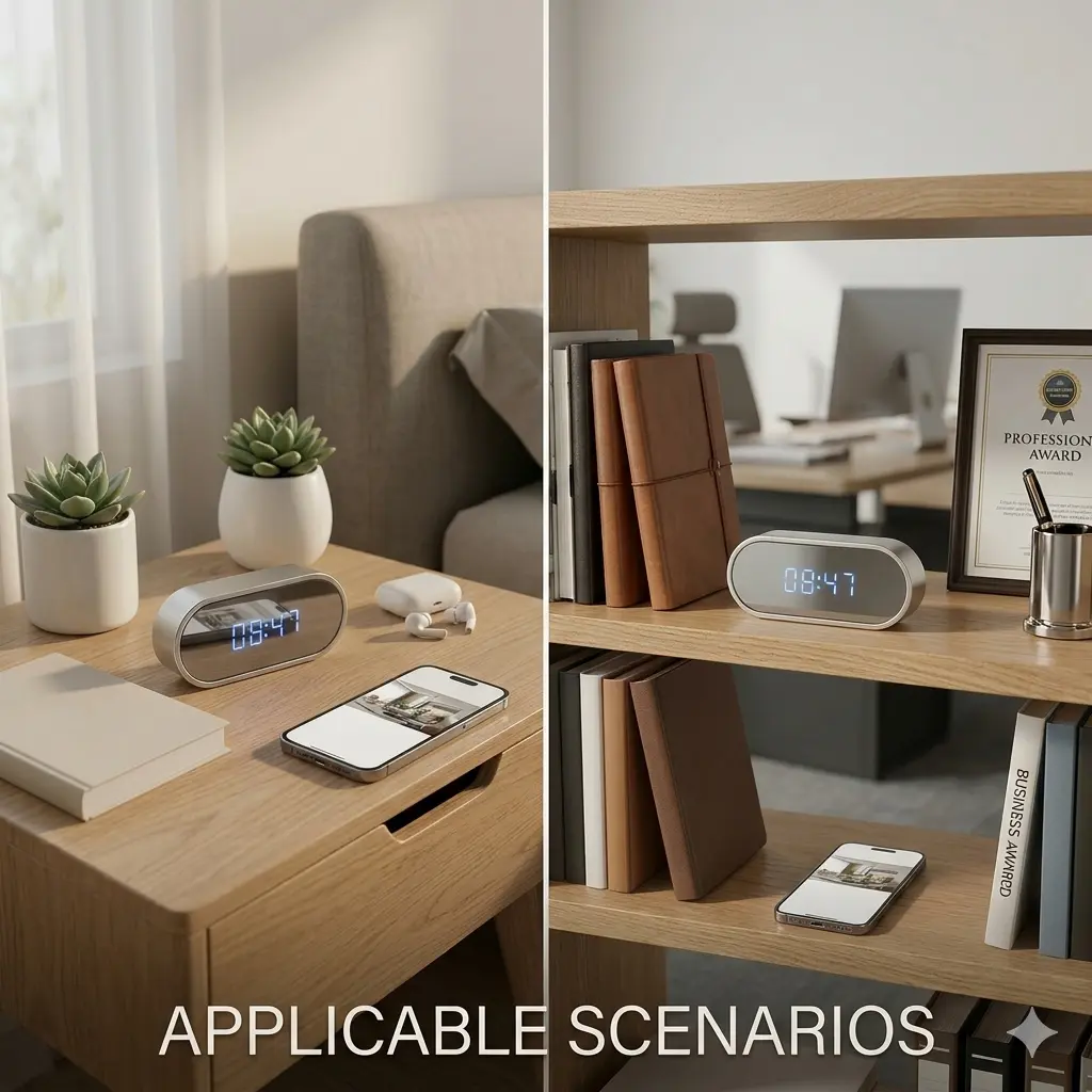 Equipped with a high-definition surveillance lens, it supports 24-hour real-time monitoring. Whether you are caring for the elderly, looking after children at home, preventing burglary risks, or protecting property safety, it can clearly capture every detail with delicate and non-blurry images, allowing you to keep track of the dynamics at home at any time. Combined with the smart digital clock function, it displays the time accurately. There is no need to place an additional clock, realizing two functions in one device, which is simple and convenient. It is suitable for various home scenes such as living rooms, bedrooms, and hallways. It can not only serve as a security device but also as a home decoration, weakening the cold feeling of monitoring and integrating into daily life.