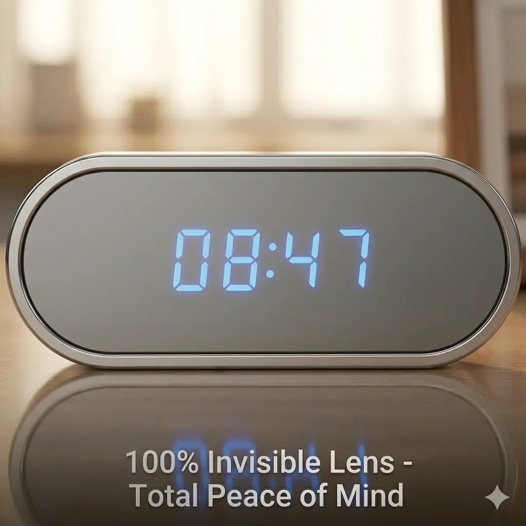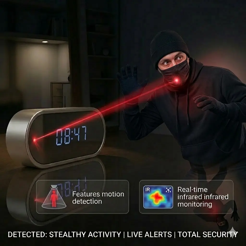 HD lens, 24/7 real-time monitoring, 2-in-1 with smart clock.