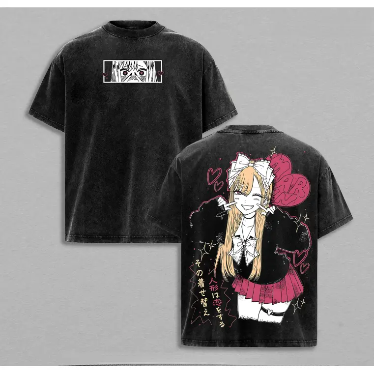 Marin Kitagawa My Dress Up Darling Anime T-Shirt, Waifu Graphic Vintage Washed Tee, Kawaii Cosplay Girl Oversized Streetwear, Soft Cotton Casual Top for Anime Fans