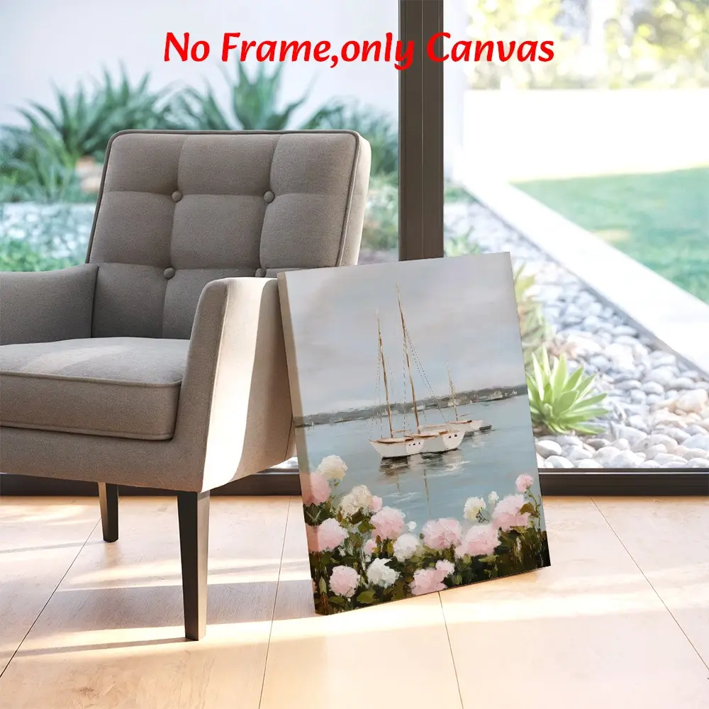 【Coastal Scene】: Features sailboats on a lake with hydrangeas, creating a serene coastal atmosphere.