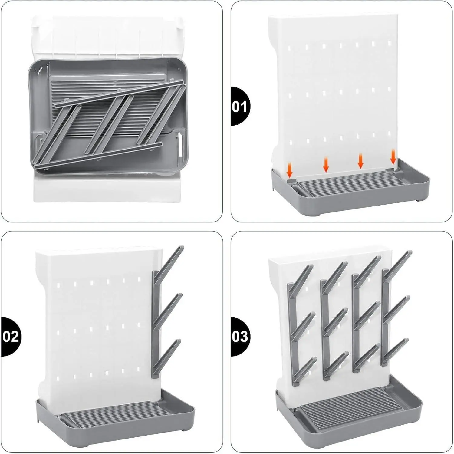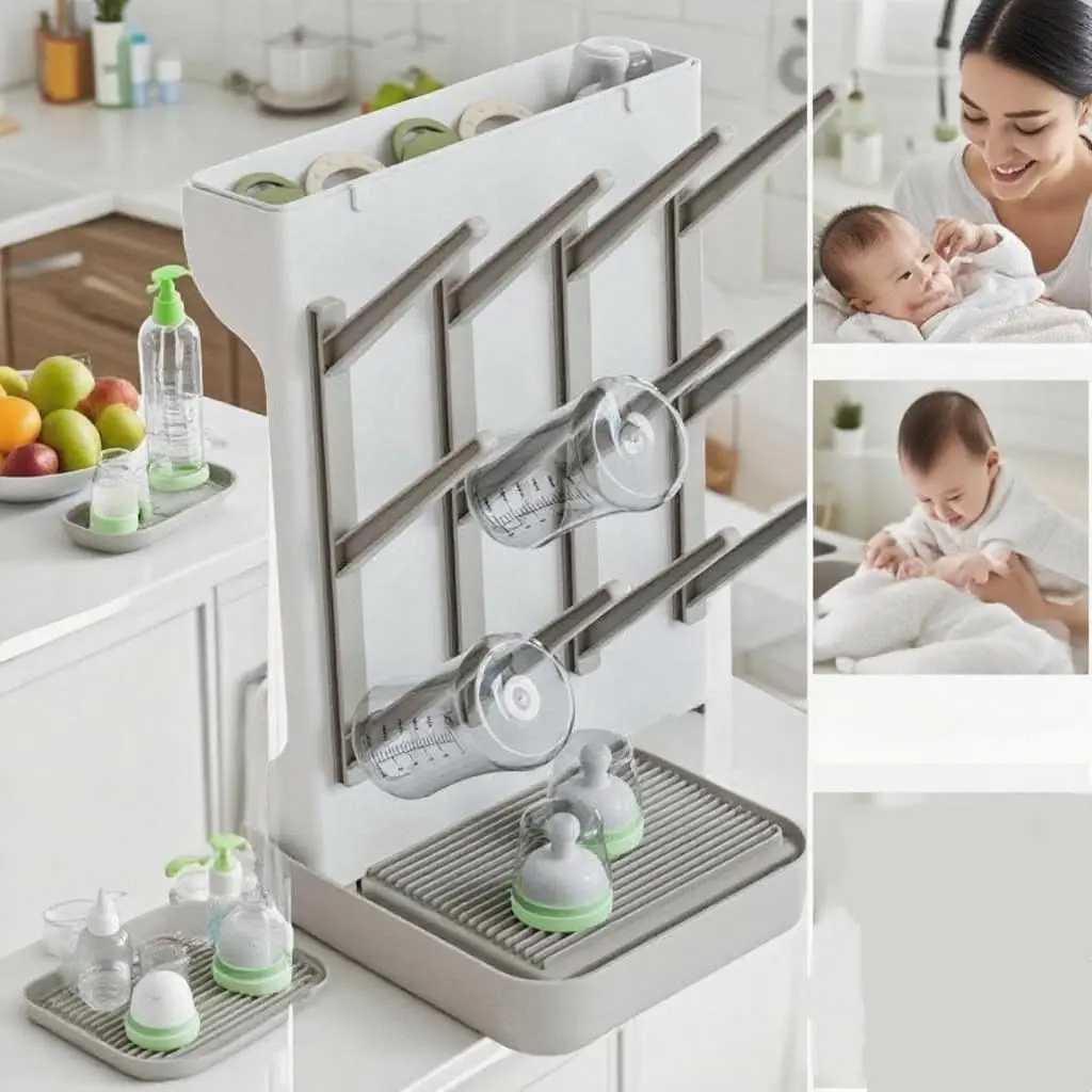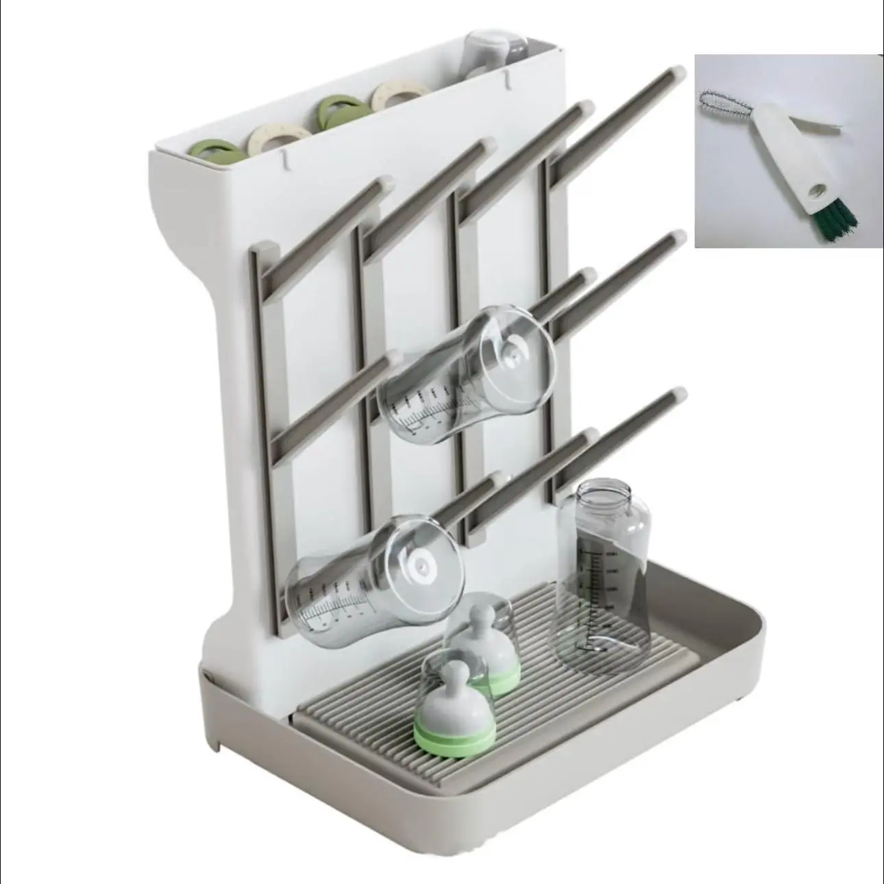 Baby Bottle Drying Rack, Countertop Bottle Dryer, Cup Drying Rack, for 12Pc Bottles and Accessories,Pump Parts,Pacifiers,Vitality Grey,Free small brush for cleaning