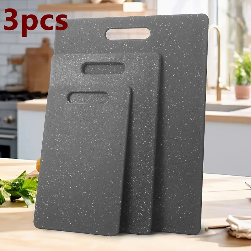 3-Piece Reversible BPA-Free Plastic Cutting Board Set, Charcoal Black