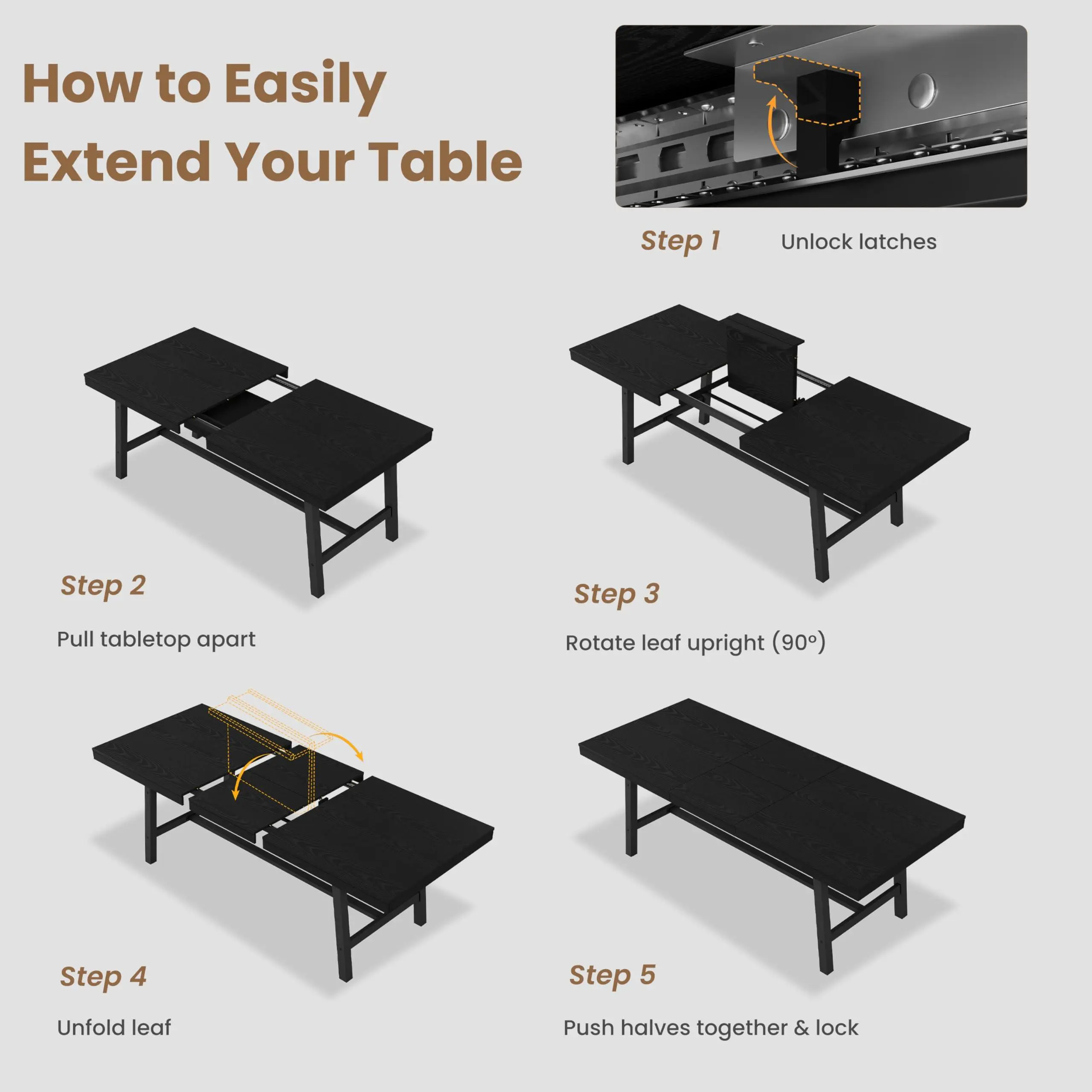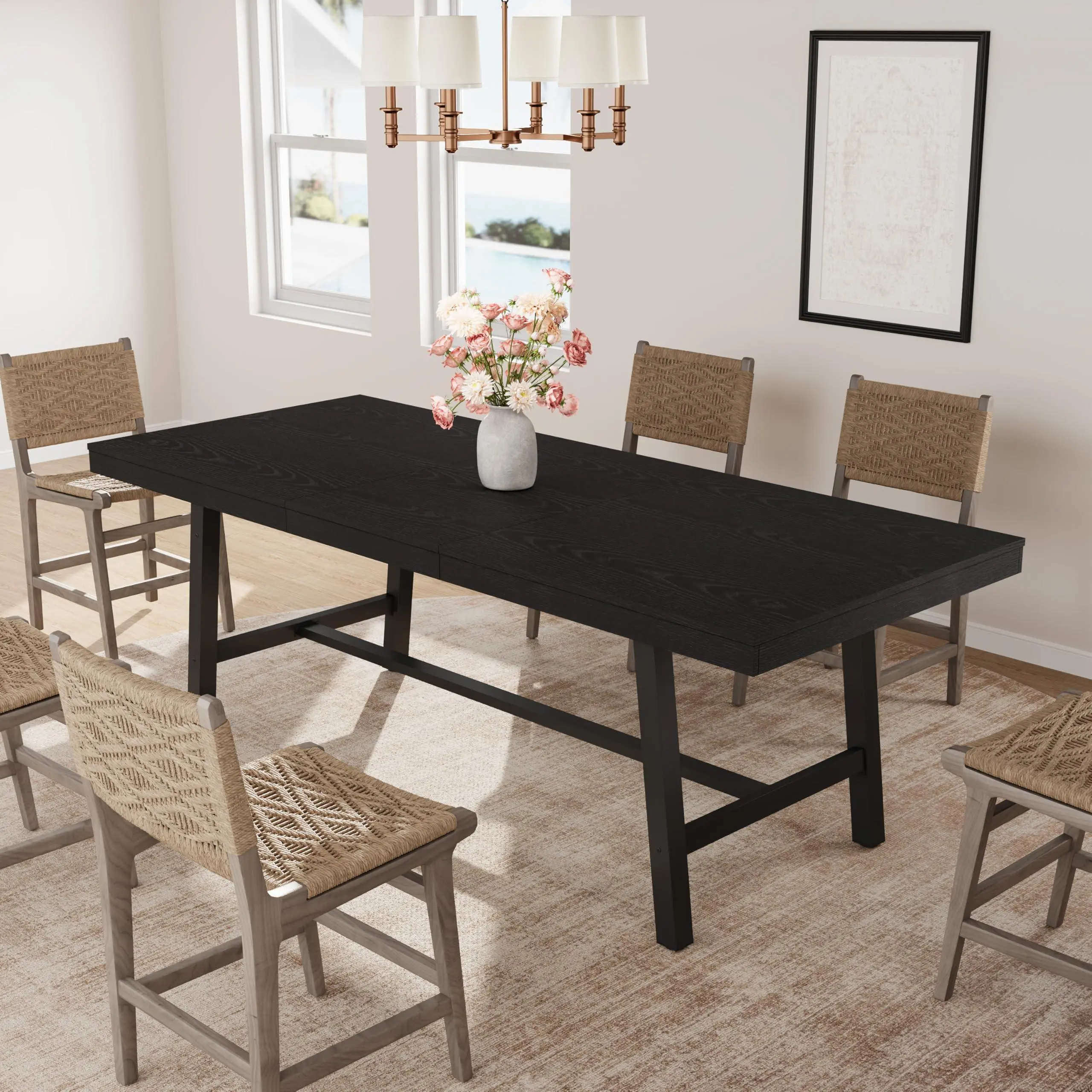 【Extendable Dining Table for 6-8 People】:Elevate your home with this versatile dining room table that seamlessly expands from 62.99" to 83.1" in length. Whether you need a standard 6 person dining table for daily family meals or a large dining table for 8 during holiday gatherings, the smooth-gliding stretchable leaf mechanism allows for an instant transformation. Perfect as an expandable kitchen table for hosting Thanksgiving or Christmas dinner parties