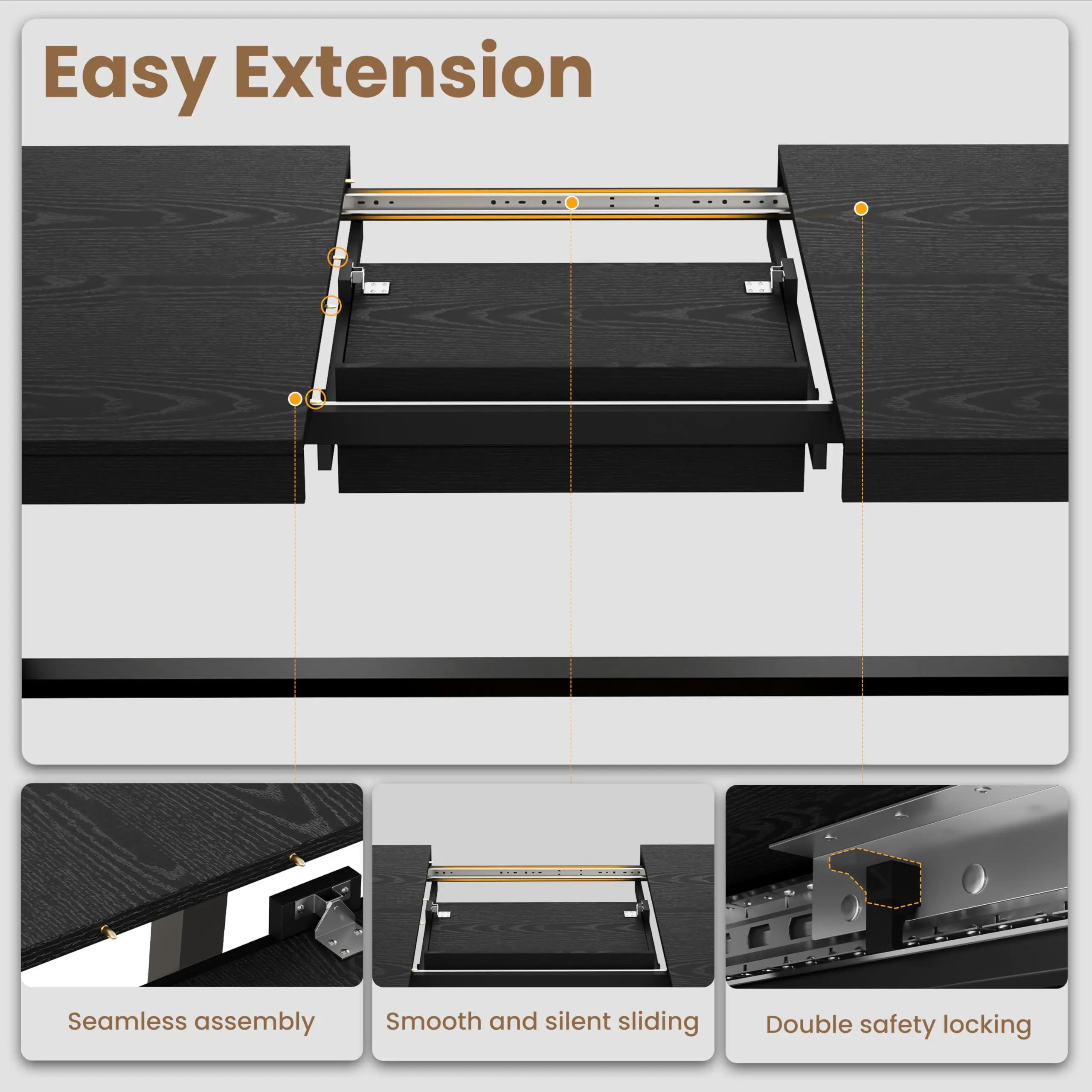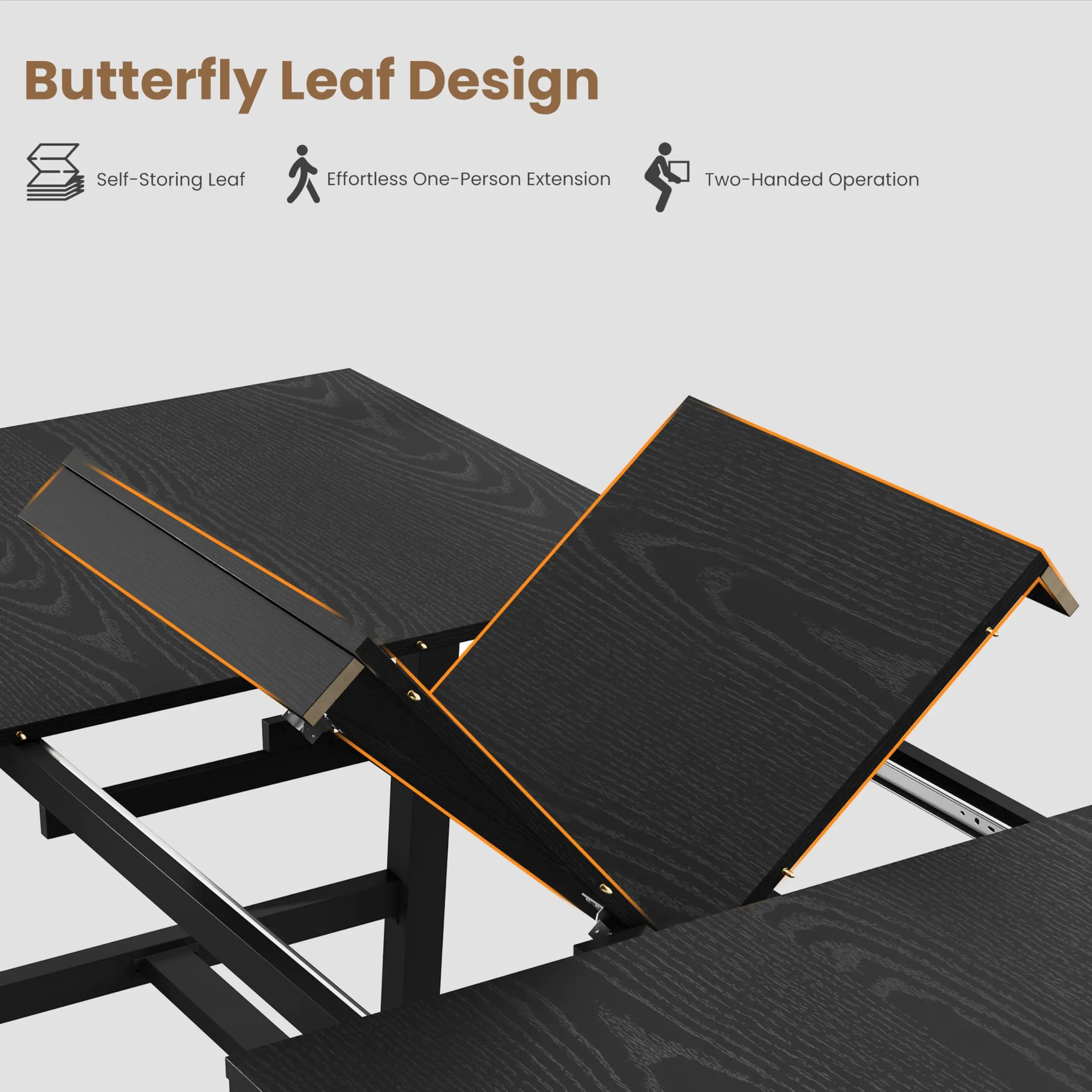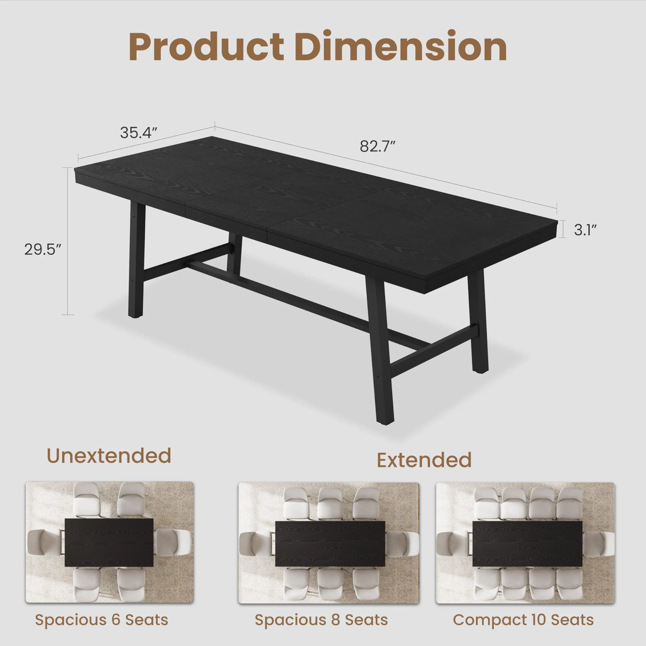 【Space-Saving Dimensions & Specifications】:Specifically designed for versatility, this wood dining table features precise dimensions: 63"-83.1"L x 35.4"W x 29.9"H. The generous 35.4-inch width provides ample space for centerpieces and serving dishes without feeling crowded. This space-saving dining table is an ideal solution for apartments, small dining areas, or even as a long conference table for your home office