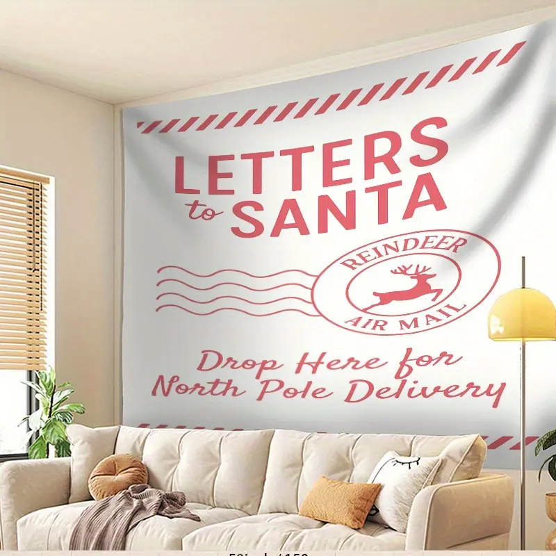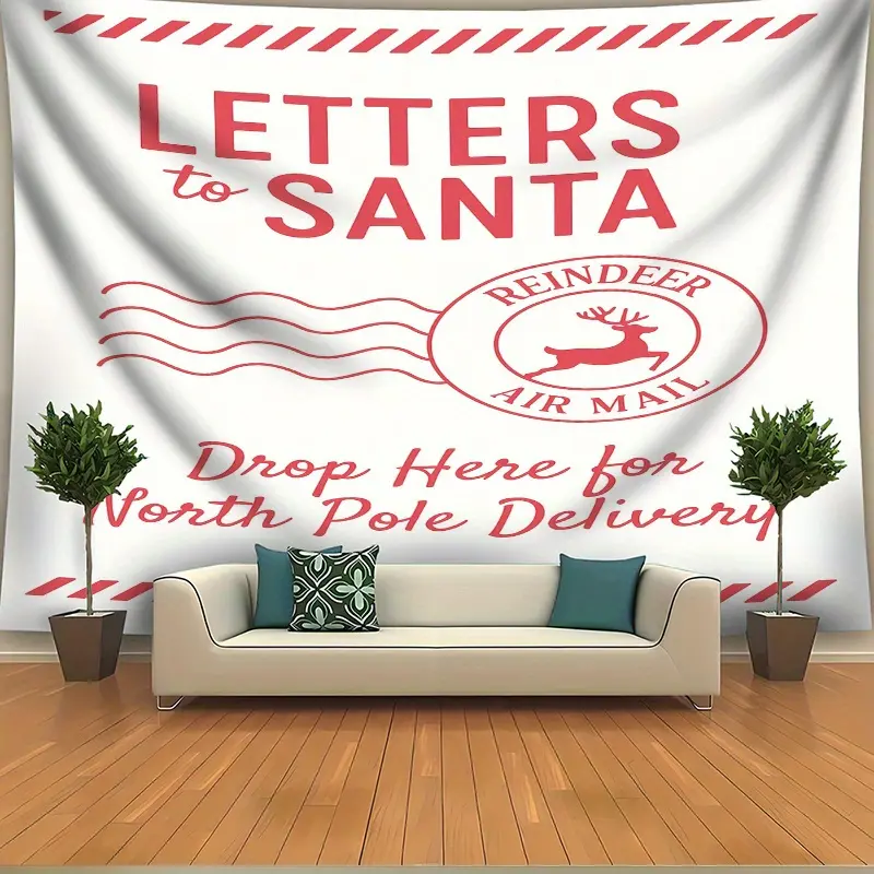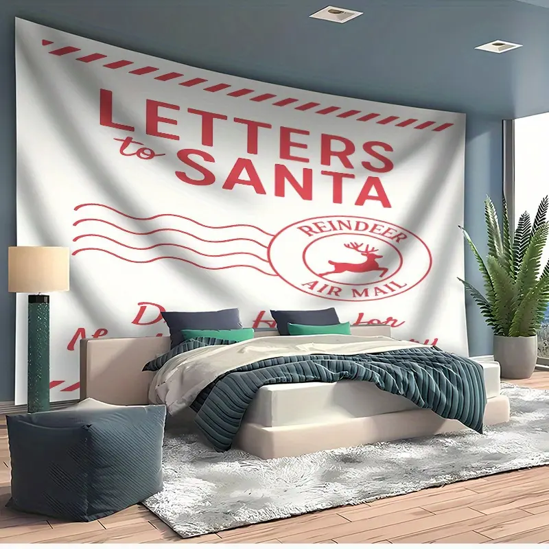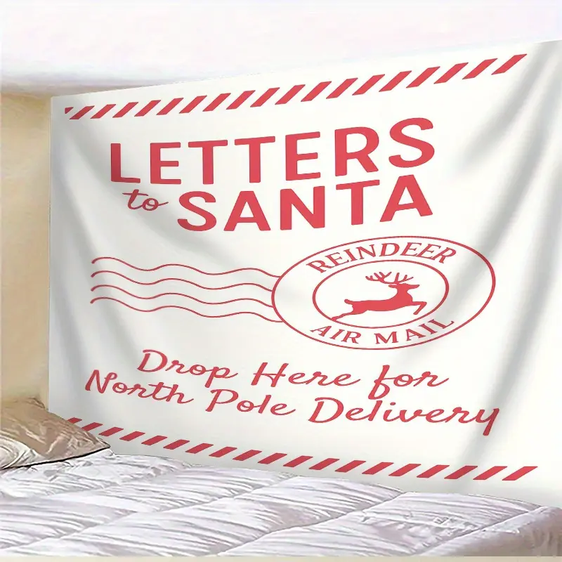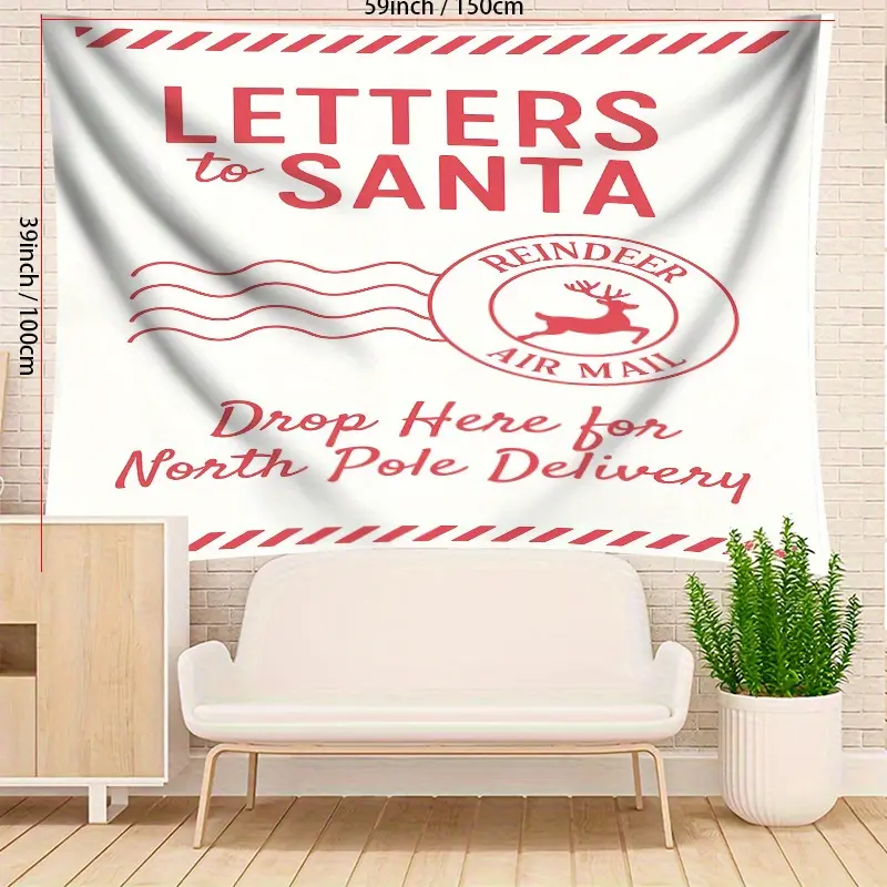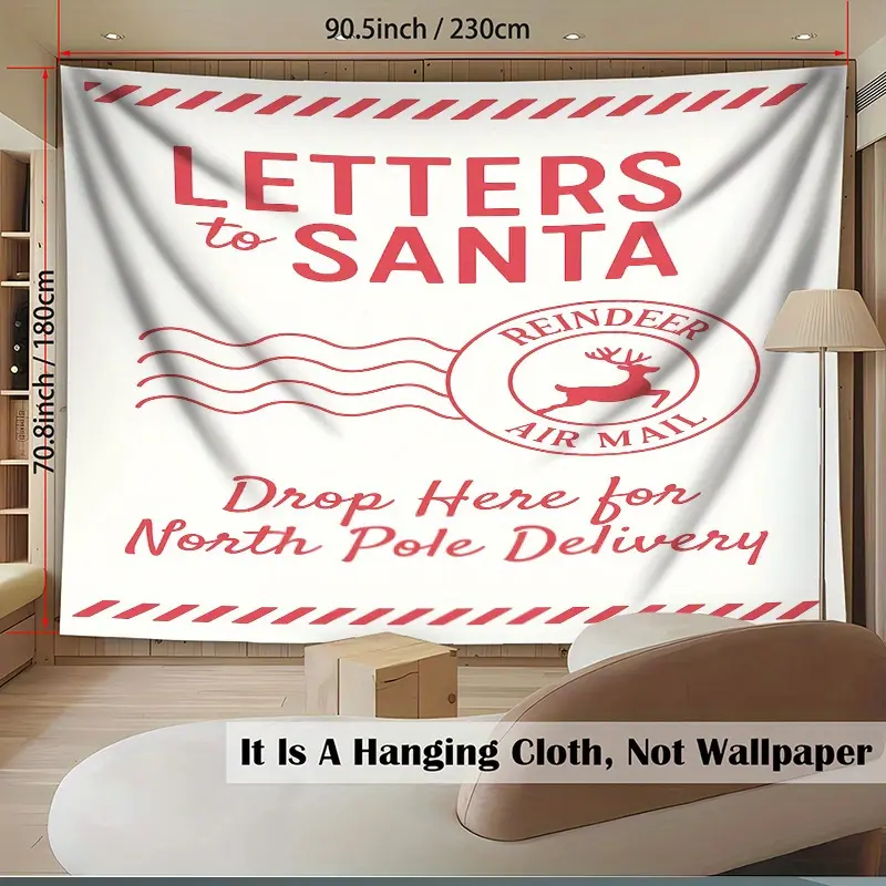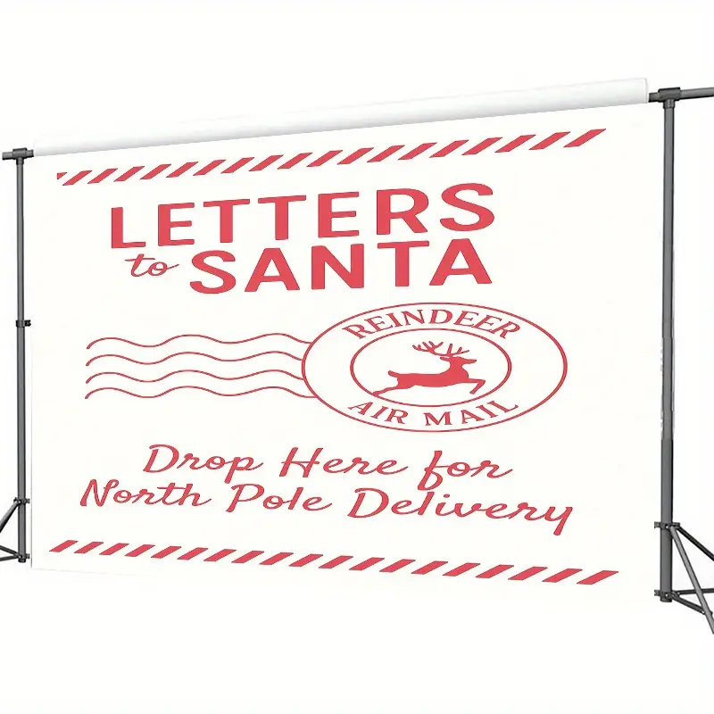 Large Letters to Santa Photo Backdrop with Reindeer Mail Postmarks, North Pole Theme Banner for Christmas Wedding Birthday Party, Durable Fabric Decoration