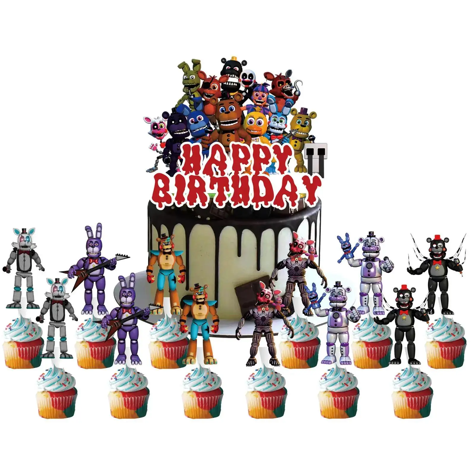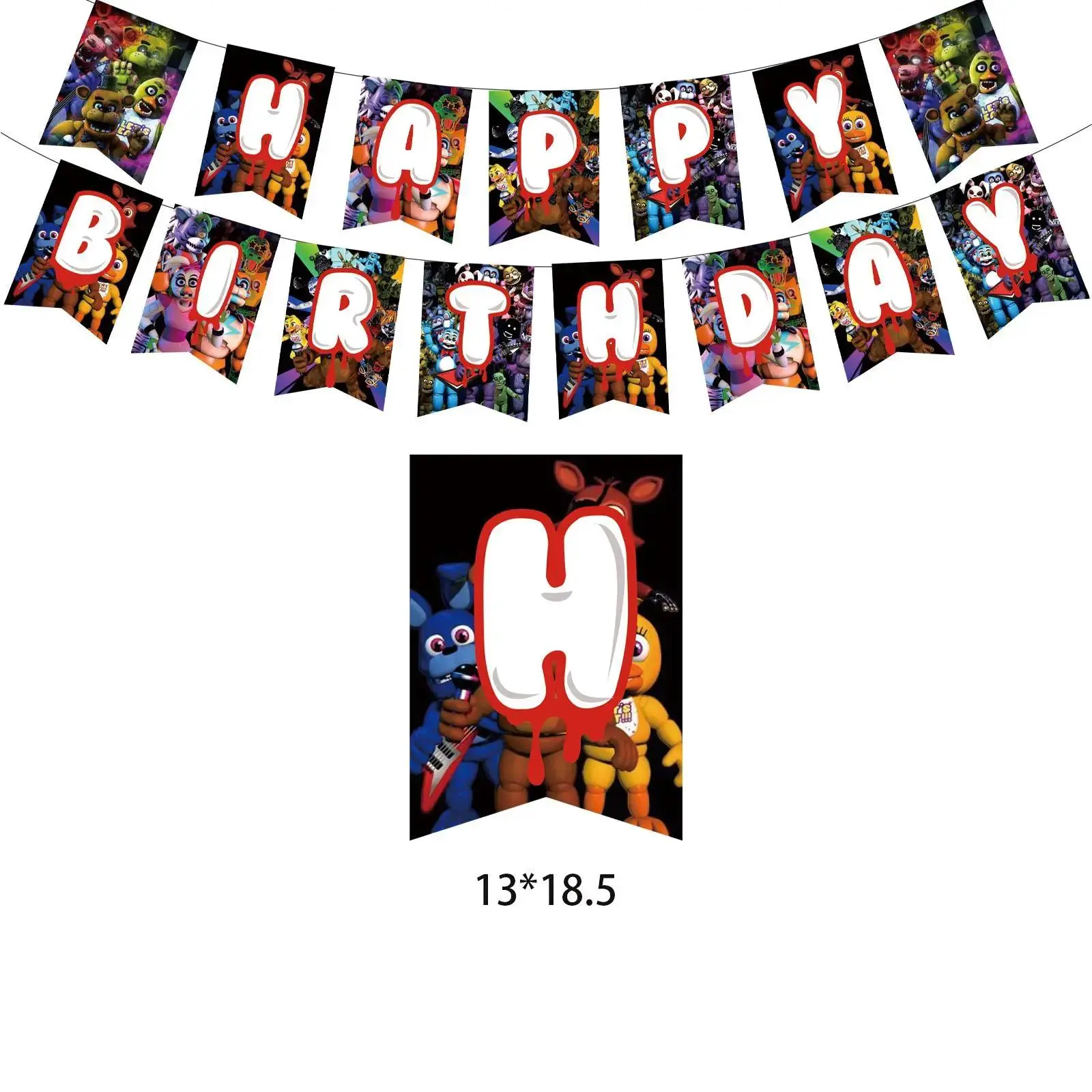 FNAF Birthday Decoration Five Nights at Fridays Full Set Horror Cute Banner + Balloon + Cake Topper Party Supplies