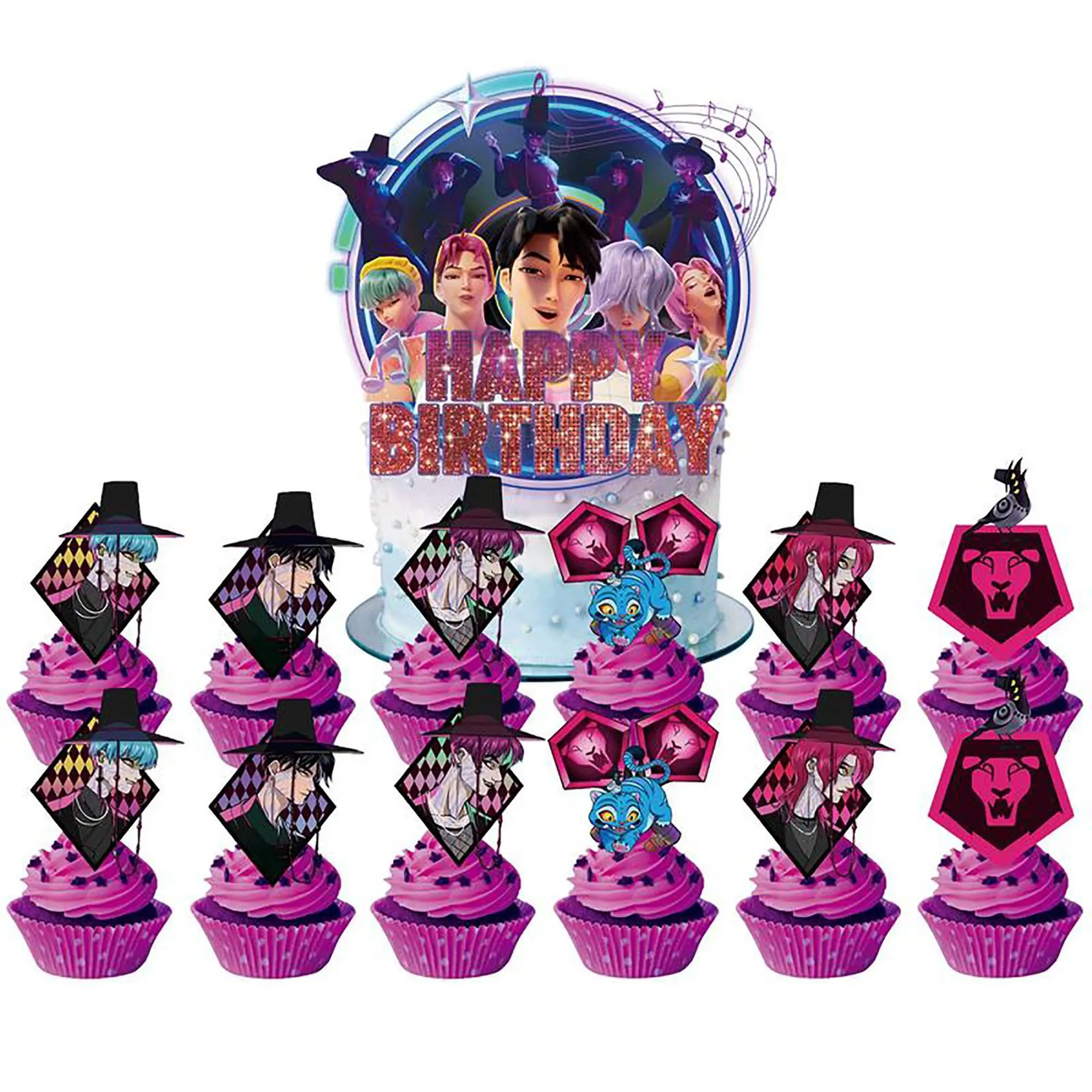 Saja Boys Themed Birthday Party Decor Bundle (Banner, Balloons, Cake Toppers) KDH Gifts for Boys Girls Kpop Demon HUnters Merch
