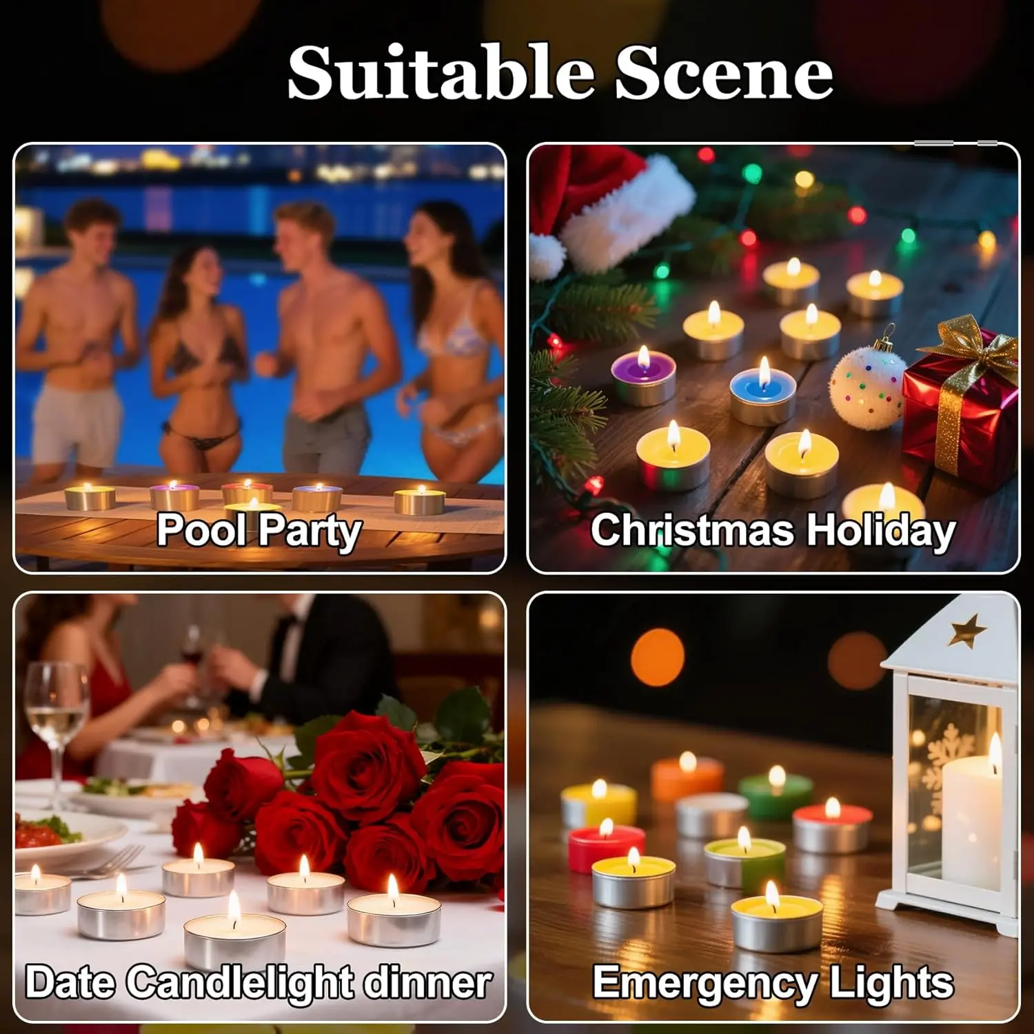 DIY TEALIGHTS CANDLE: The flat tea lights candle is perfect for DIY. You can place your favorite decorations, write warm blessings, and draw the patterns you want. Small tealight candles perfect for Christmas Halloween weddings parties and home decor. SAFETY: With our tea light candle, safety is a priority, crafted with a lead-free 100% cotton wick for a clean, smokeless burn. Relish the warm glow without the worry of harmful fumes or irritating smoke,safety and quality in our tealights. LONG BURN TIME: With cotton wick, our unscented votive candles can burn continuously up to 4 hours without any smoke or flickers while the metal holder makes sure you don’t have to worry about any wax drippings. Multifunctional Mix Color Tealights:Each package contains 25 pcs wax candle tea lights, you can use white tea candle anywhere in your home, including bathroom, kitchen, living room, office. MEMORABLE: Tea light candles are perfect for creating memorable moments, ideal for romantic dinners, restaurants, birthday party decorations, or a relaxing spa atmosphere.