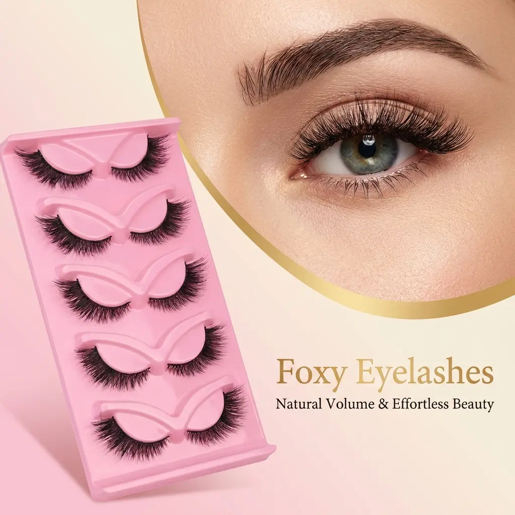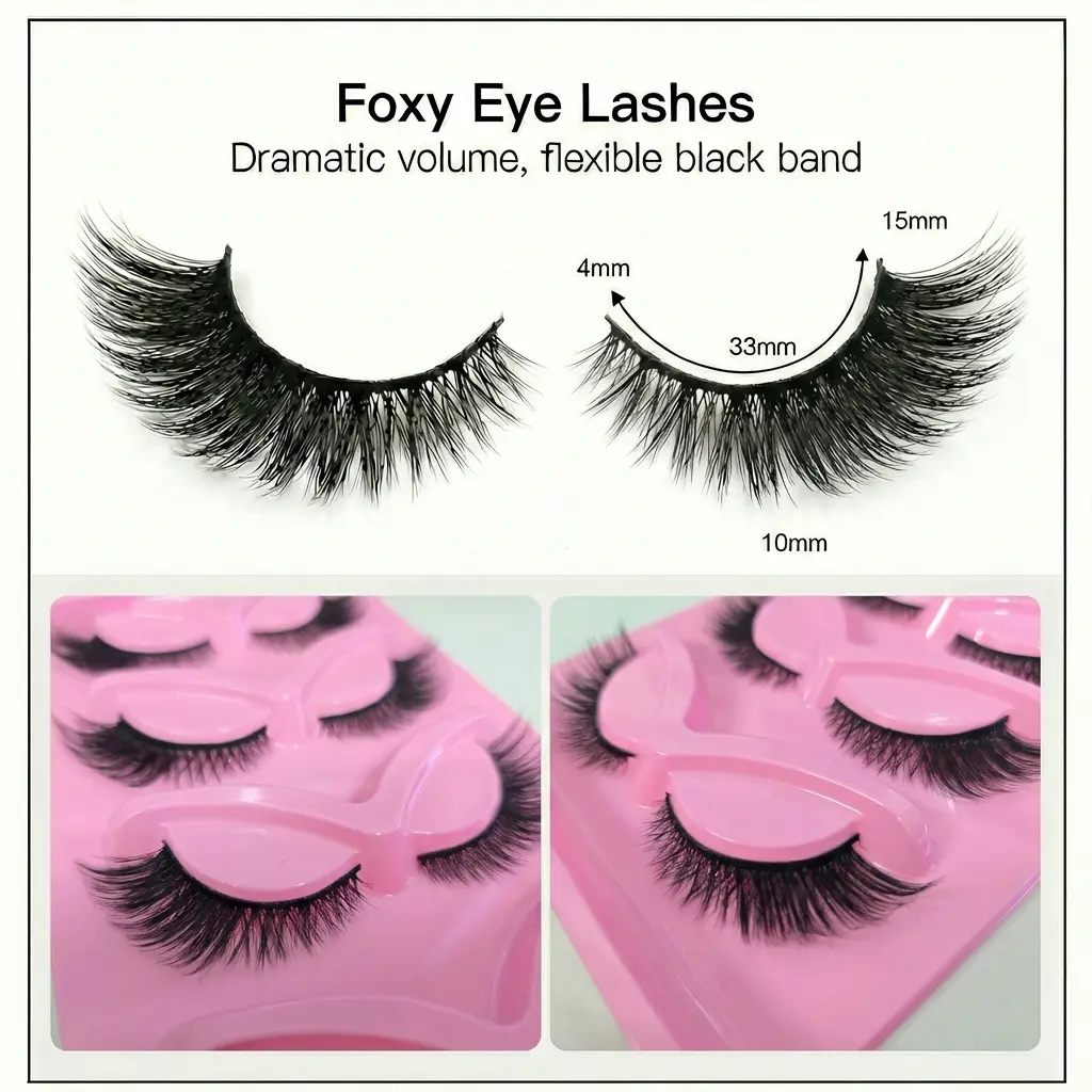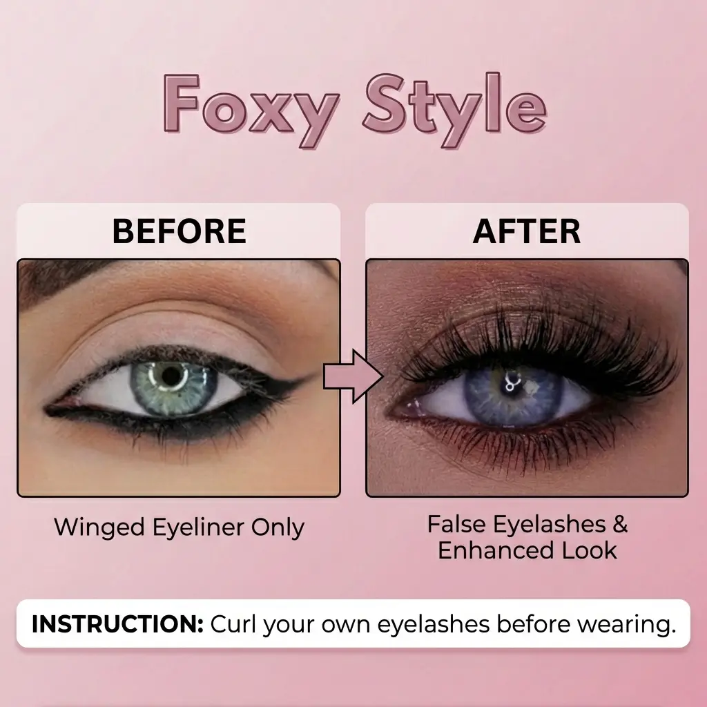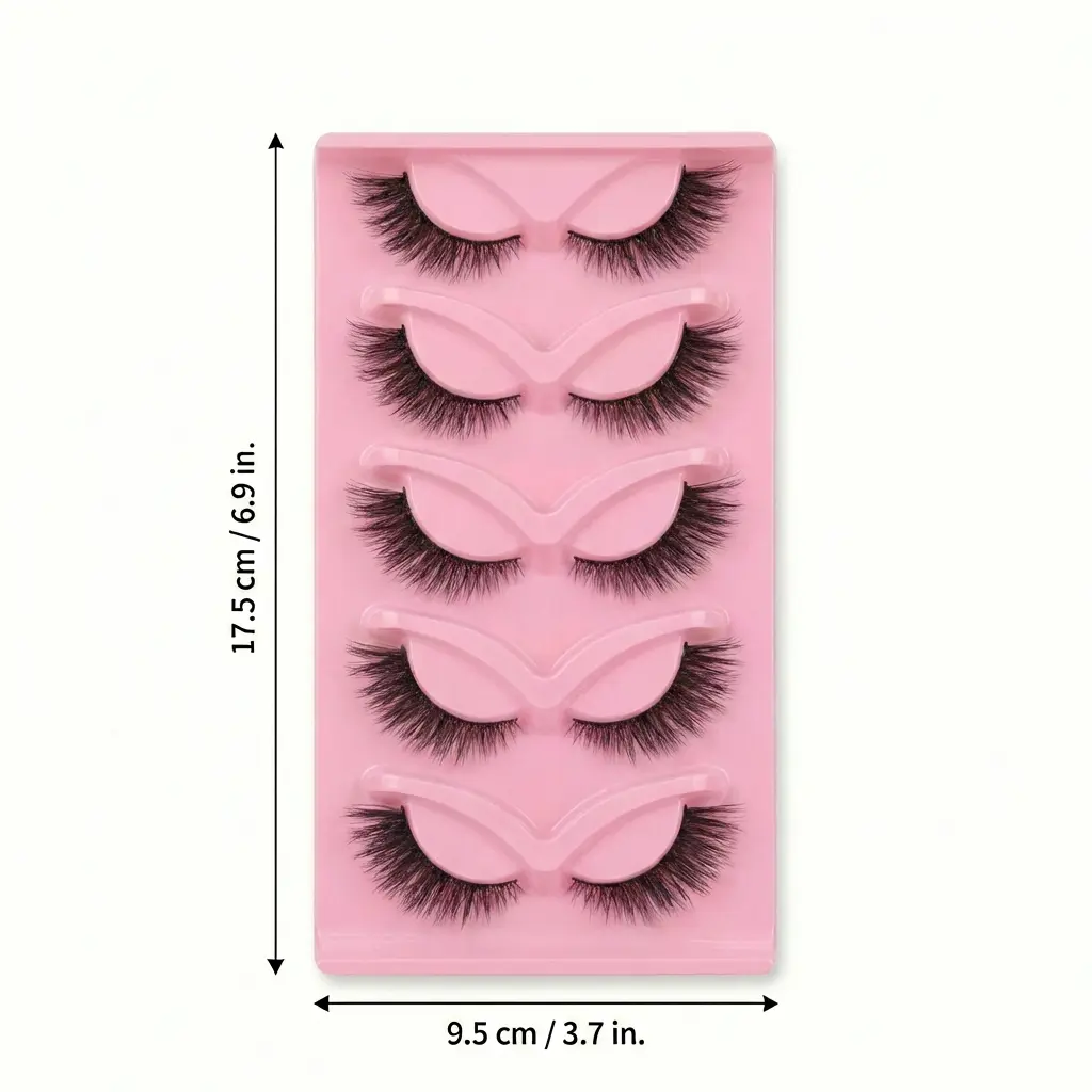 This 1/3-Piece Cat-Eye False Lash Set is a must-have for atmospheric eye makeup! Each lash features a strip design with a carefully adjusted curve. The basic style is naturally fluffy, subtly filling gaps in your natural lashes. The outer corners are lengthened, creating an upward-curled cat-eye shape. It adds a charming "sparkling gaze" effect, suitable for both light and heavy makeup looks.