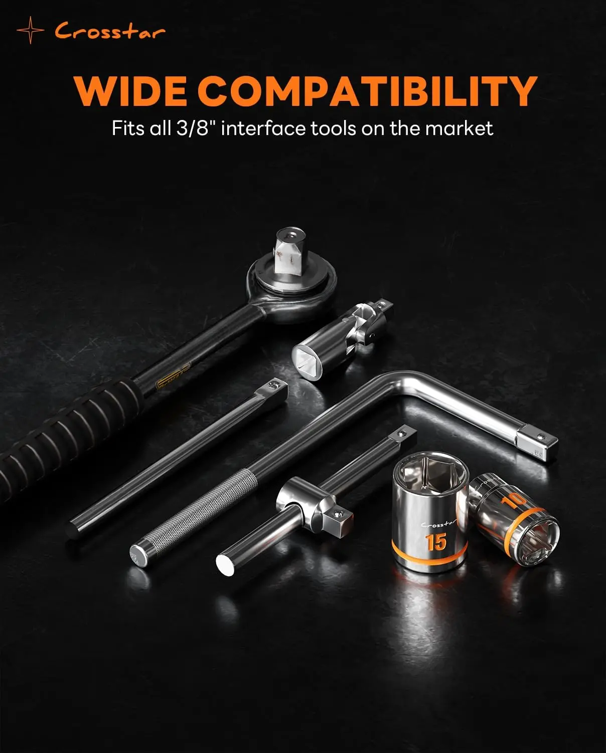 ·【Universal Compatibility & Reliable Quality Guarantee】This 10PCS metric socket set is compatible with all 3/8" drive tools on the market, including ratchet wrenches, extension bars, and various screwdrivers. To extend the product's service life, we recommend avoiding use with electric wrenches as much as possible. It’s ideal for families, construction workers, garage workshops, car repair workers, and DIY hobbyists—and also a perfect gift! We stand behind our quality with reliable after-sales service; feel free to contact us if you have any issues during use.