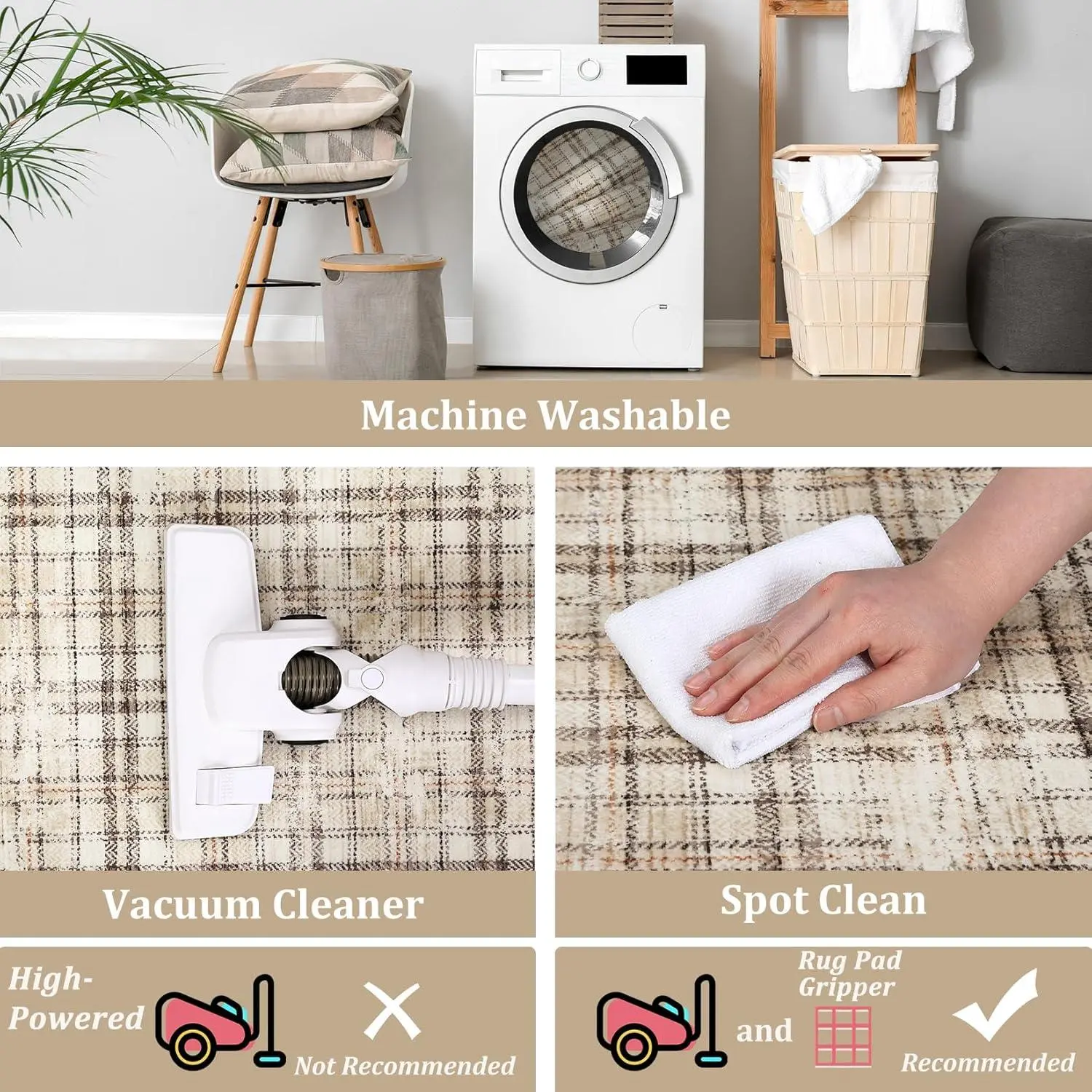 Machine Washable Area Rug: This machine washable area rug offers easy maintenance for busy households. Simply toss it in the washing machine for a quick refresh, ensuring a clean and fresh look with minimal effort.