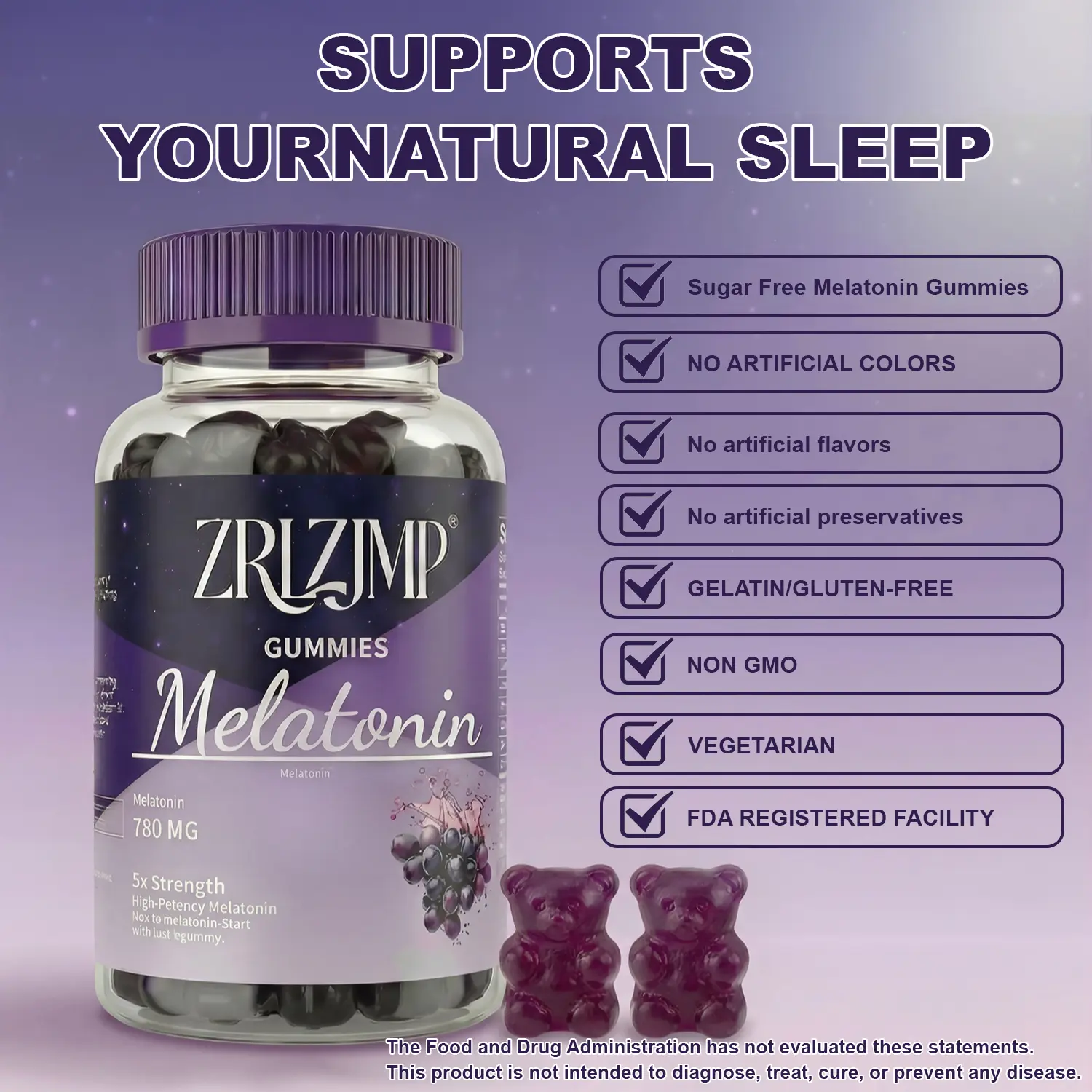 【Delicious Grape Gummies】Enjoy your nighttime routine with delicious grape-flavored gummies that are easy to chew and convenient to take—no pills, no water needed.