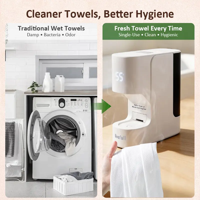 The Livefull Smart Towel Machine transforms compressed towels into soft, warm, spa-like towels in seconds—perfect for skincare, relaxation, and everyday comfort.